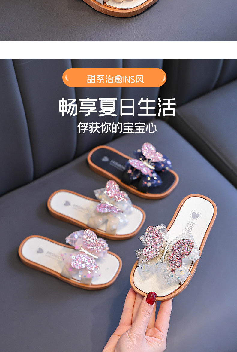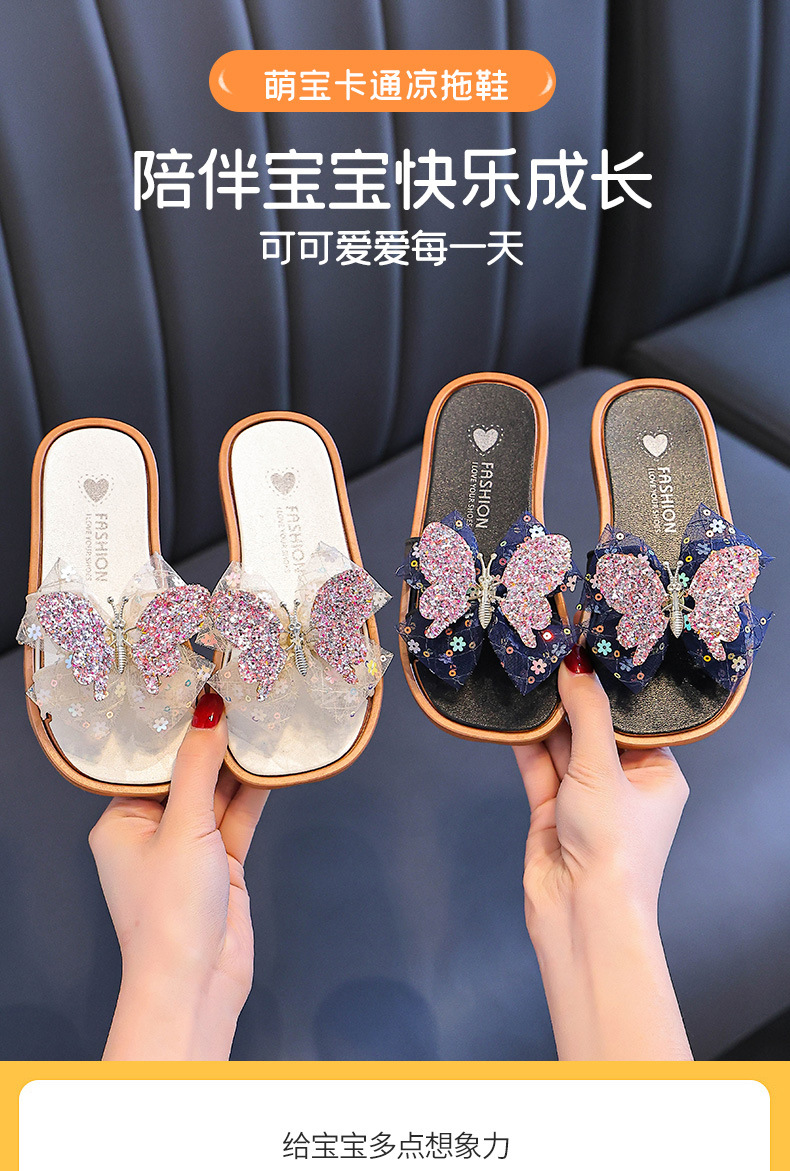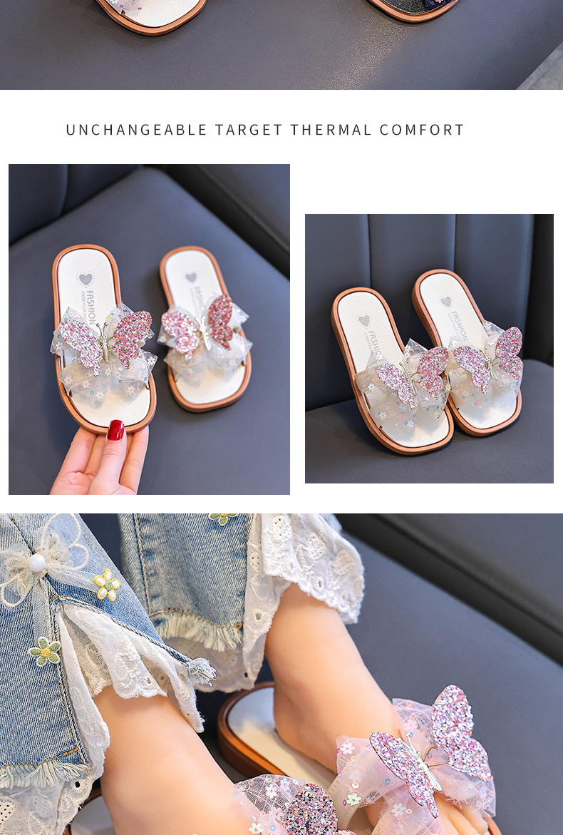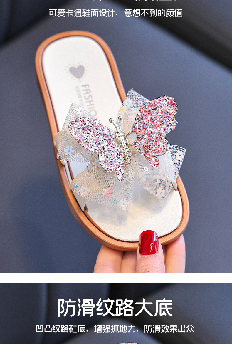 霊動蝶児童スリッパ夏の新型家庭室内外滑り止めソフト底少女かわいい海辺一字引き
