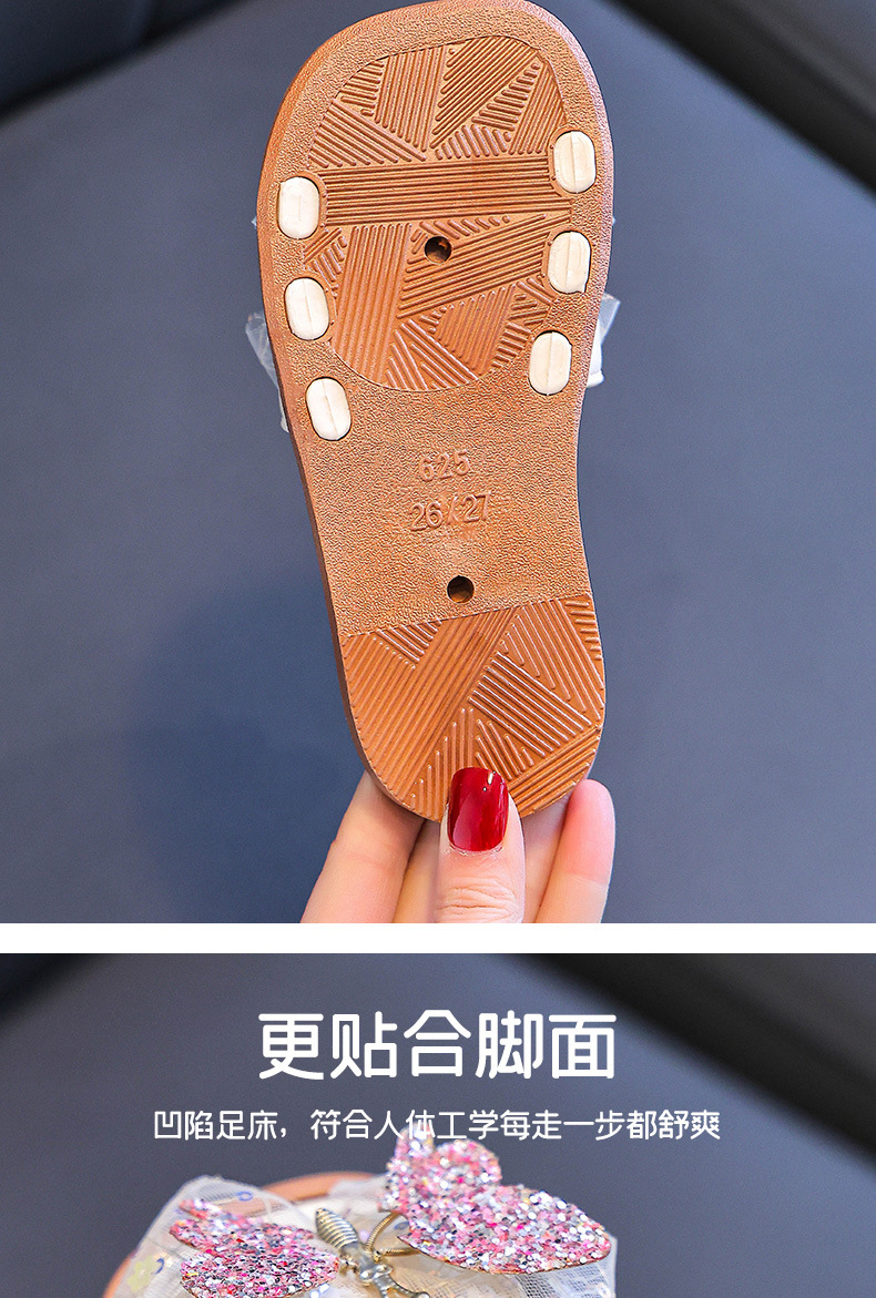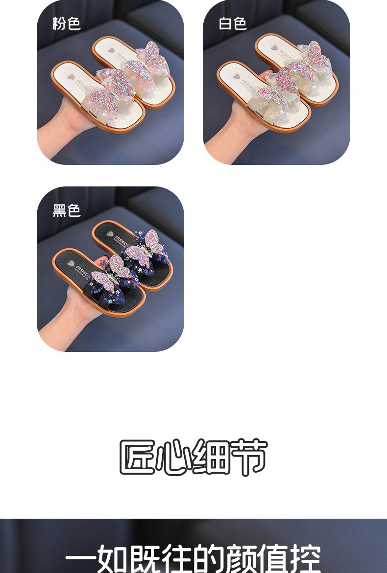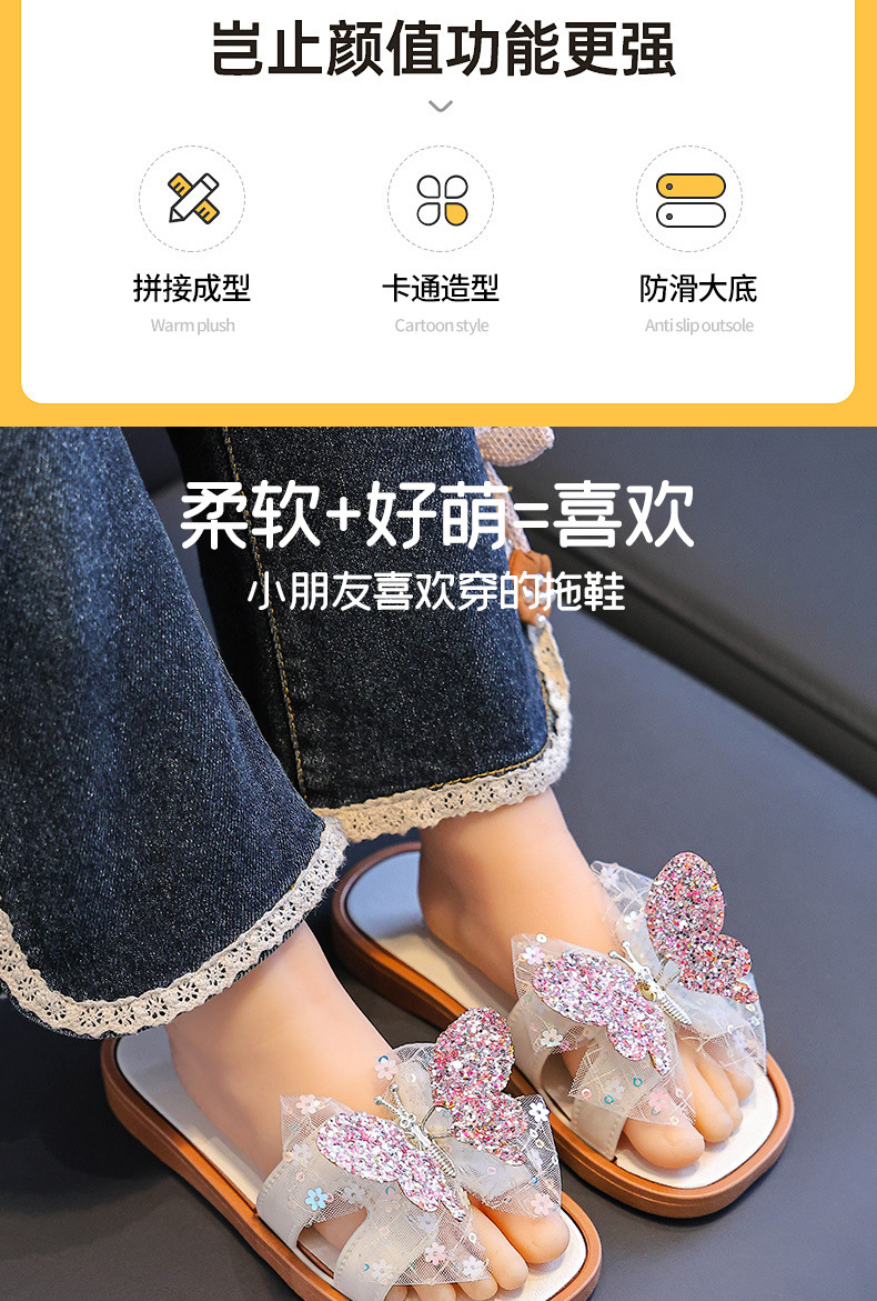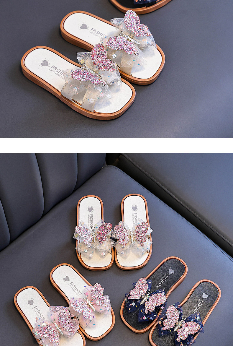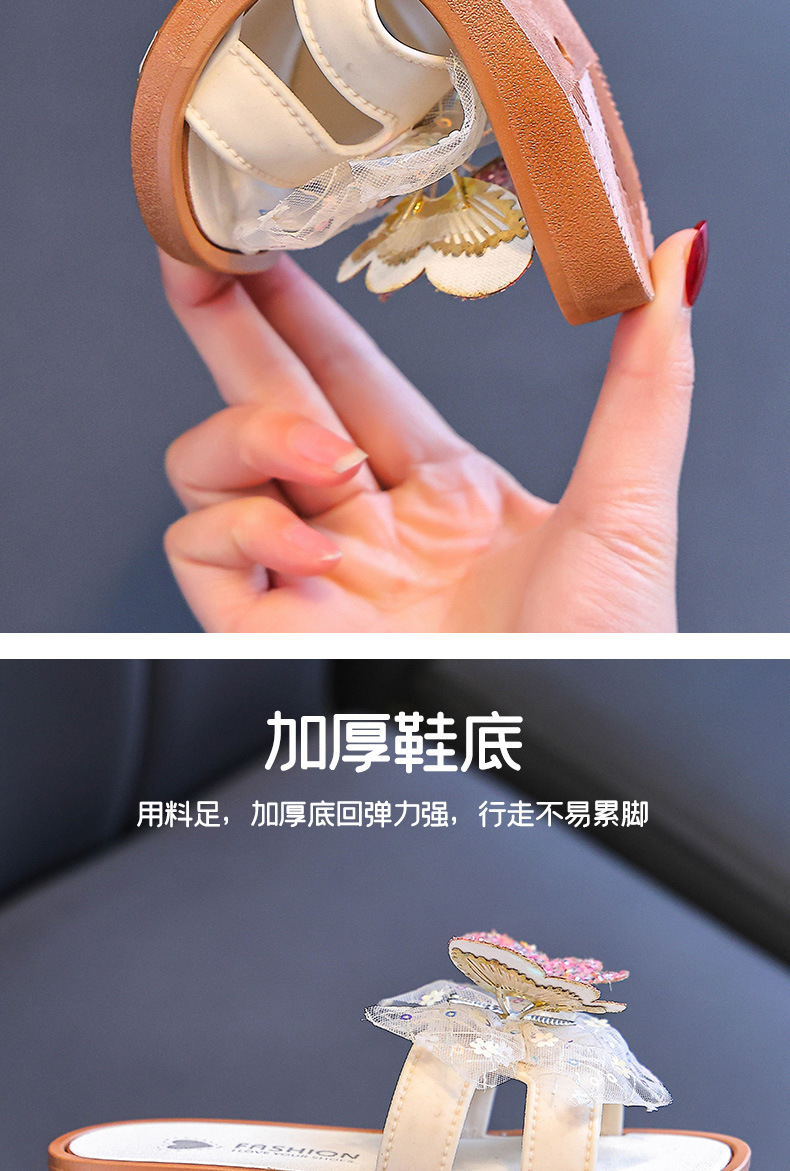 霊動蝶児童スリッパ夏の新型家庭室内外滑り止めソフト底少女かわいい海辺一字引き