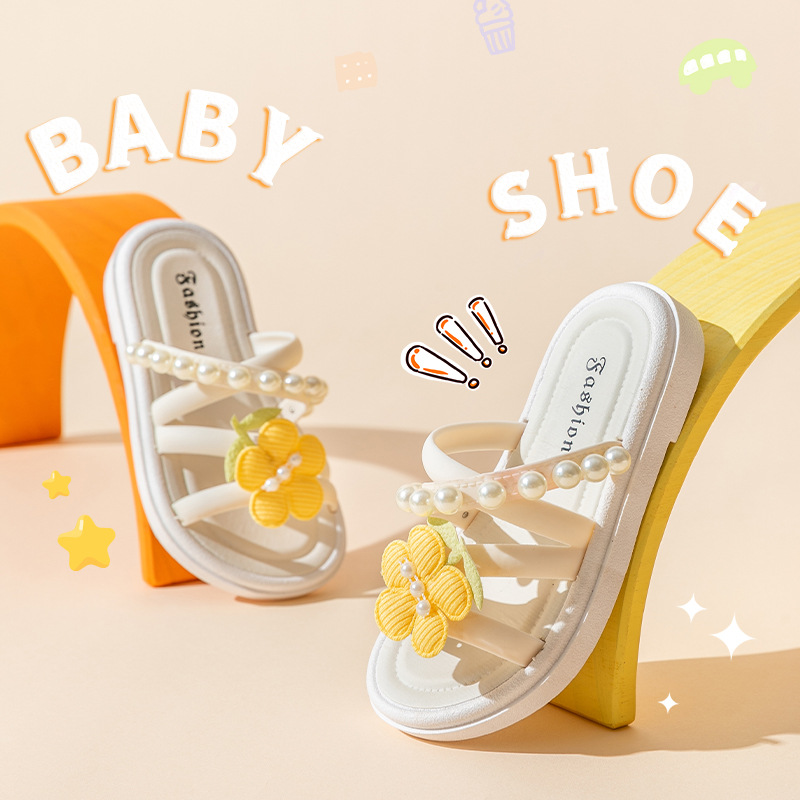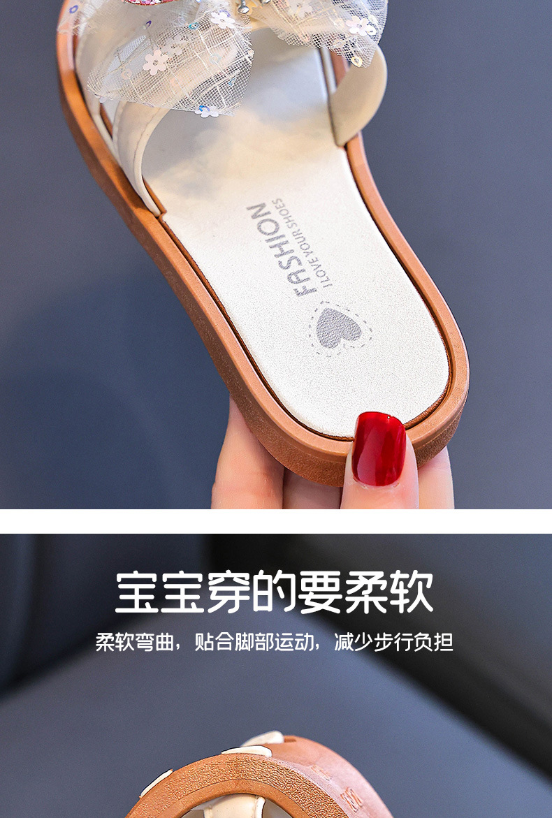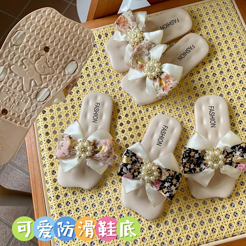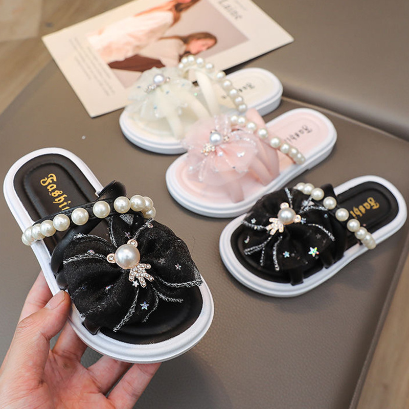 女の子のスリッパの真珠の蝶結びは夏の新型の滑り止めの室内外の王女の子供の柔らかい底の砂浜の涼しい引きずることができます。