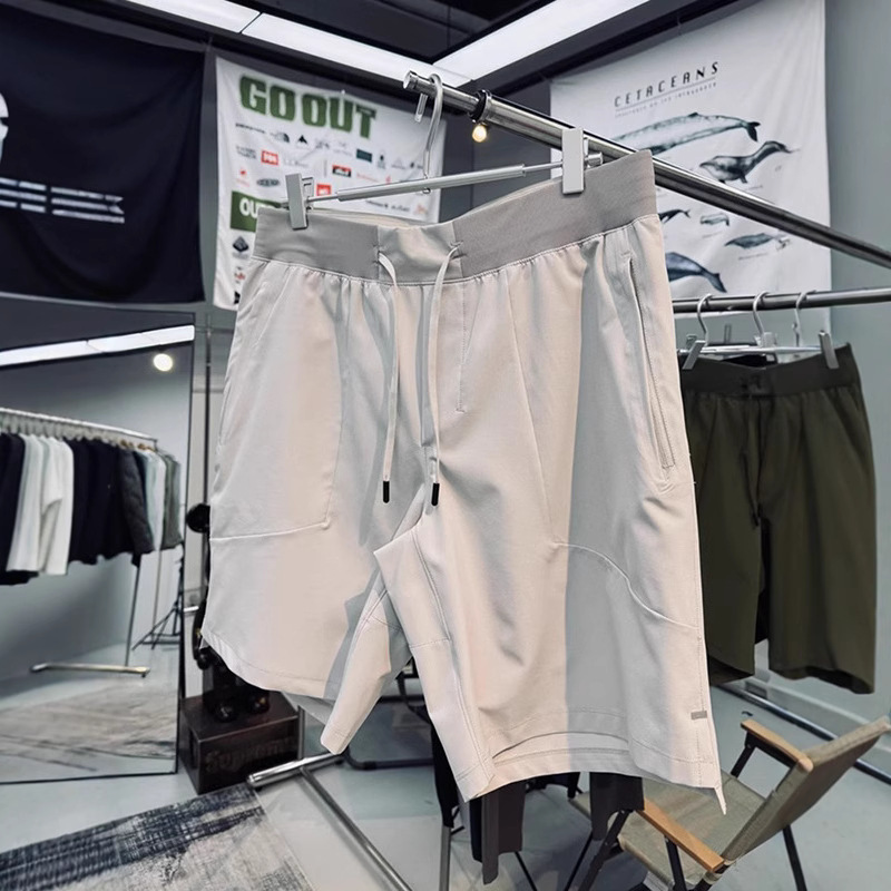 浅灰色速干运动短裤男款夏季薄款凉感透气五分裤户外跑步直筒中裤