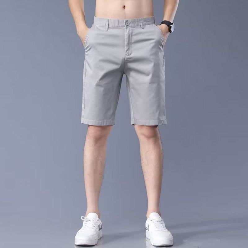 2025夏の越境新型純綿カジュアル男性式半ズボン直筒五分ズボン純色百合工装半ズボン男