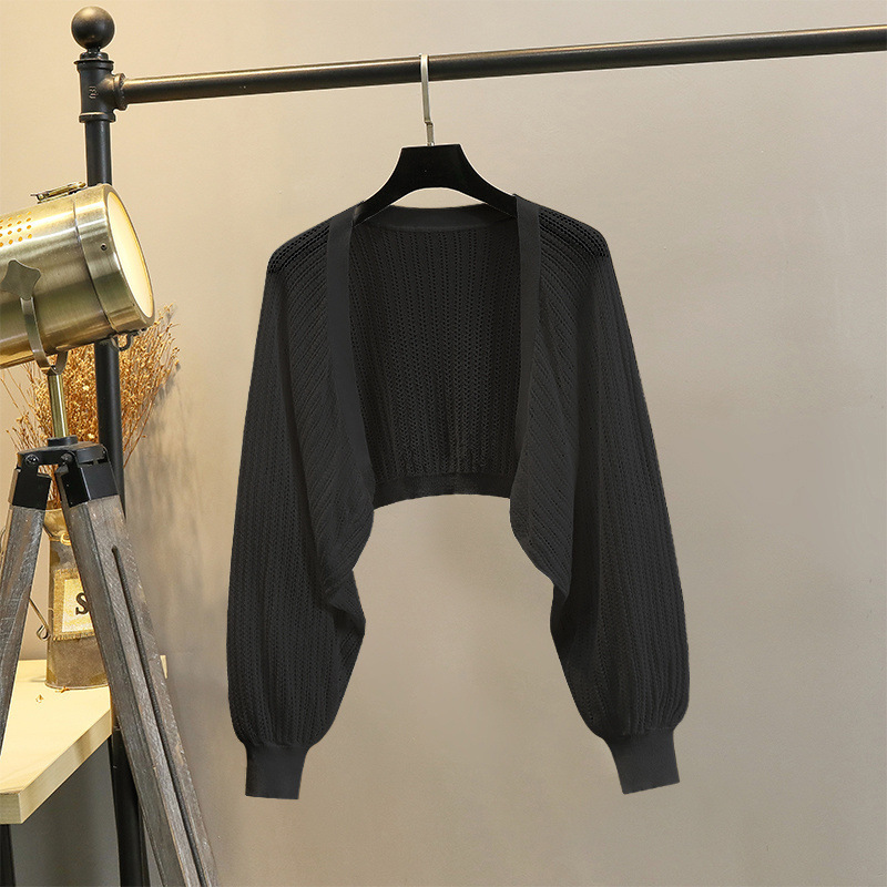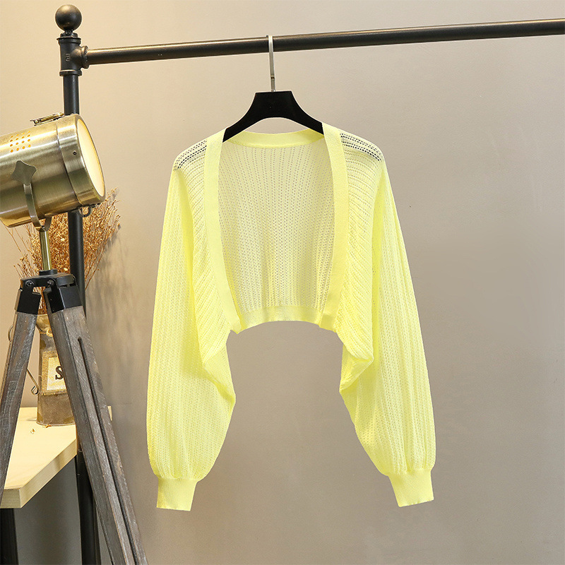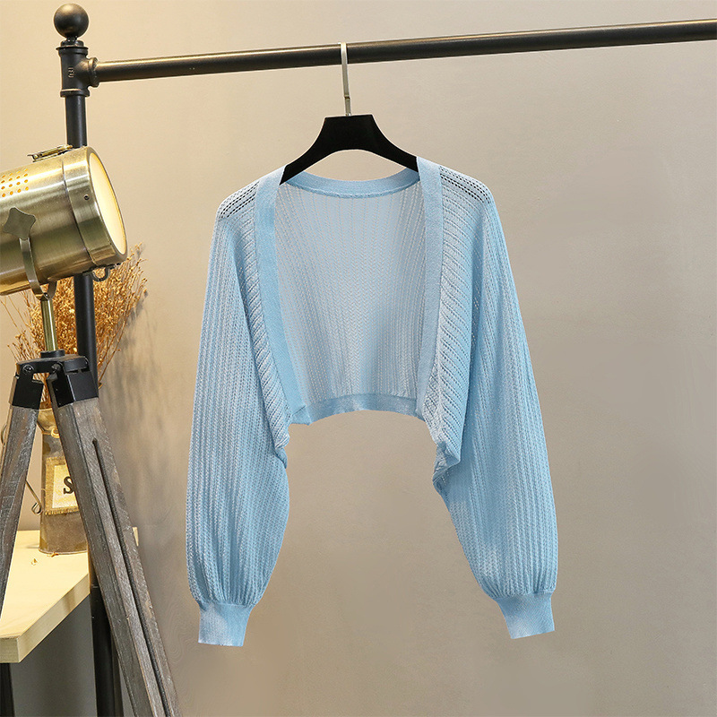 【92率】灯籠袖氷糸ニットカーディガン女性ストール夏の薄いゆるいエアコンシャツの外付け防止