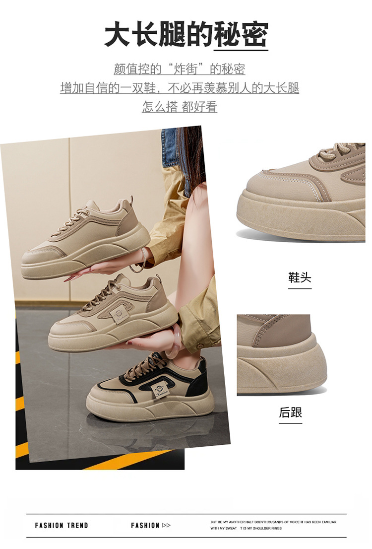 2025秋の白い靴の新型韓国版ins女子学生の厚い底が高くなります。