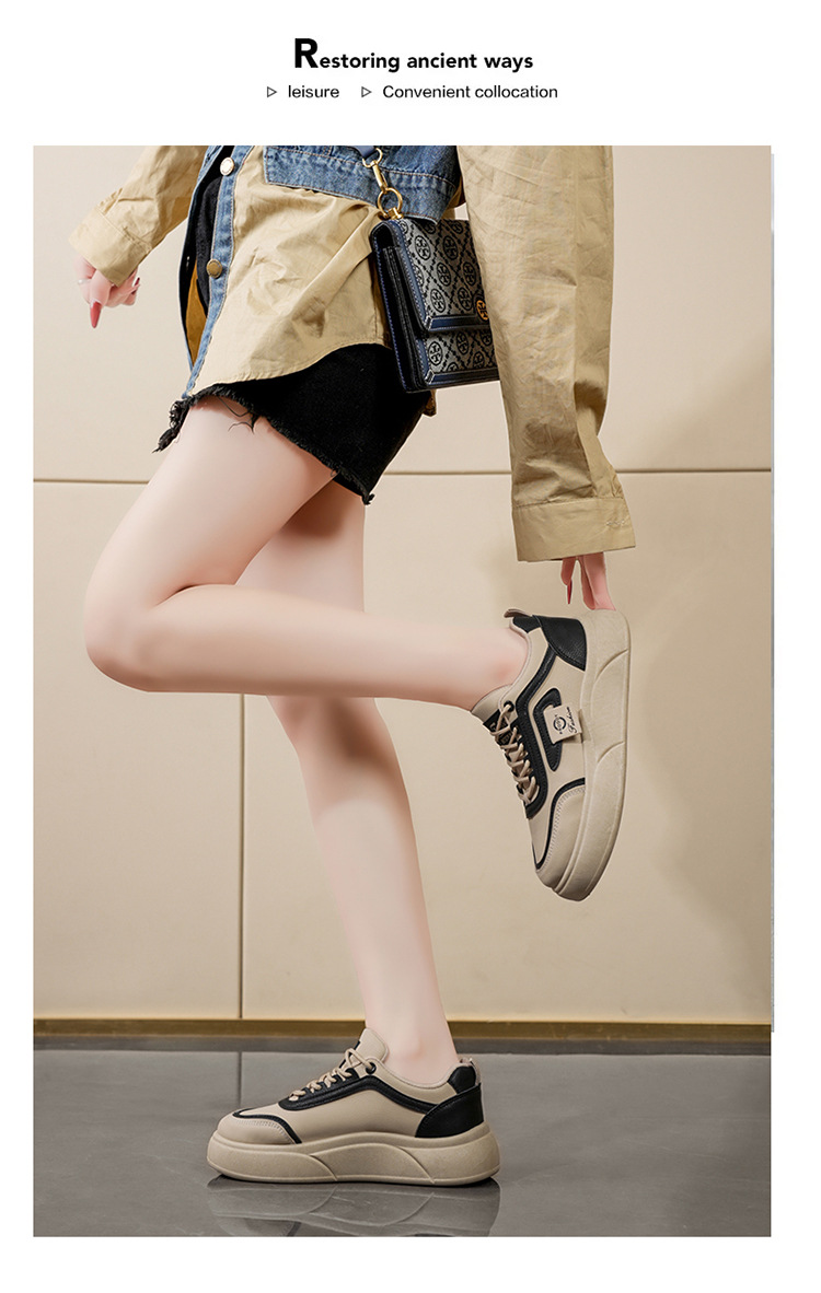 春の女性靴2025の新型の白い靴の女性は韓国版ins女子学生の厚い底の運動板の靴のカジュアルシューズを合わせます。