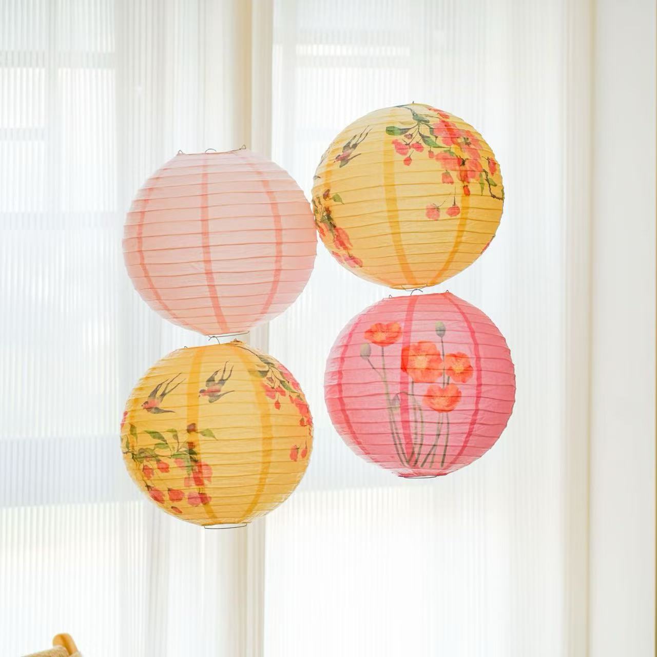 円形紙提灯シャンデリアカバー結婚祝いの家の宿屋装飾手作り作業紙灯牧場農場装飾花灯