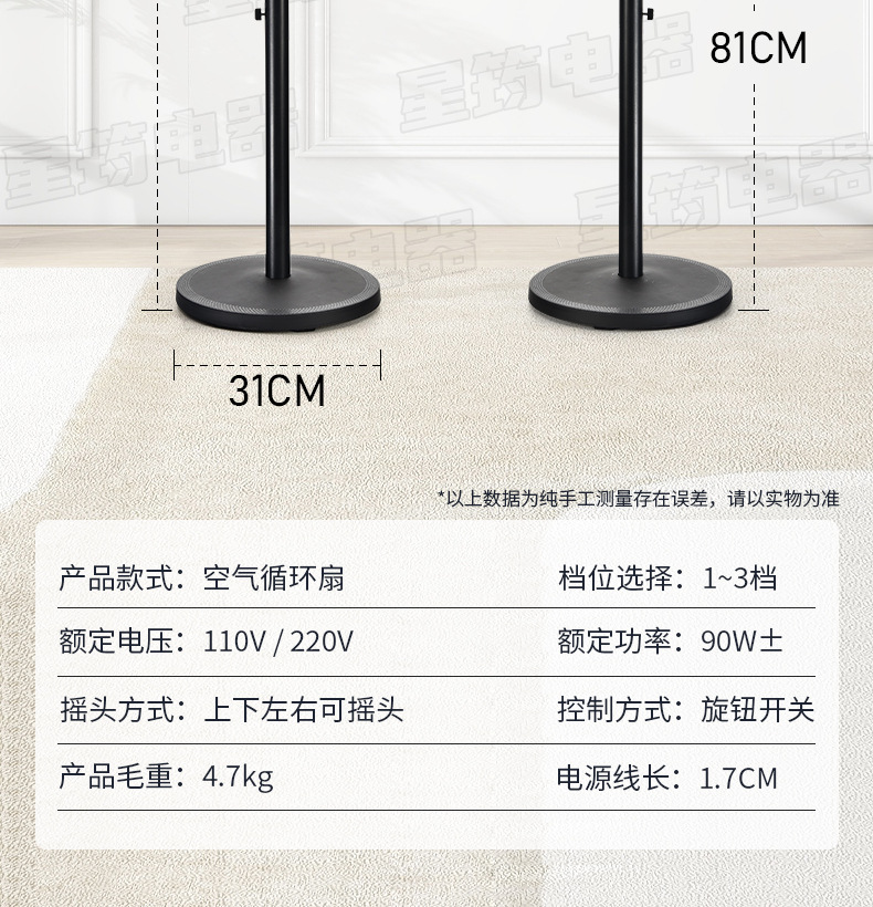 跨境空气循环扇立式电风扇客厅家用宿舍12寸风扇落地扇静音风大