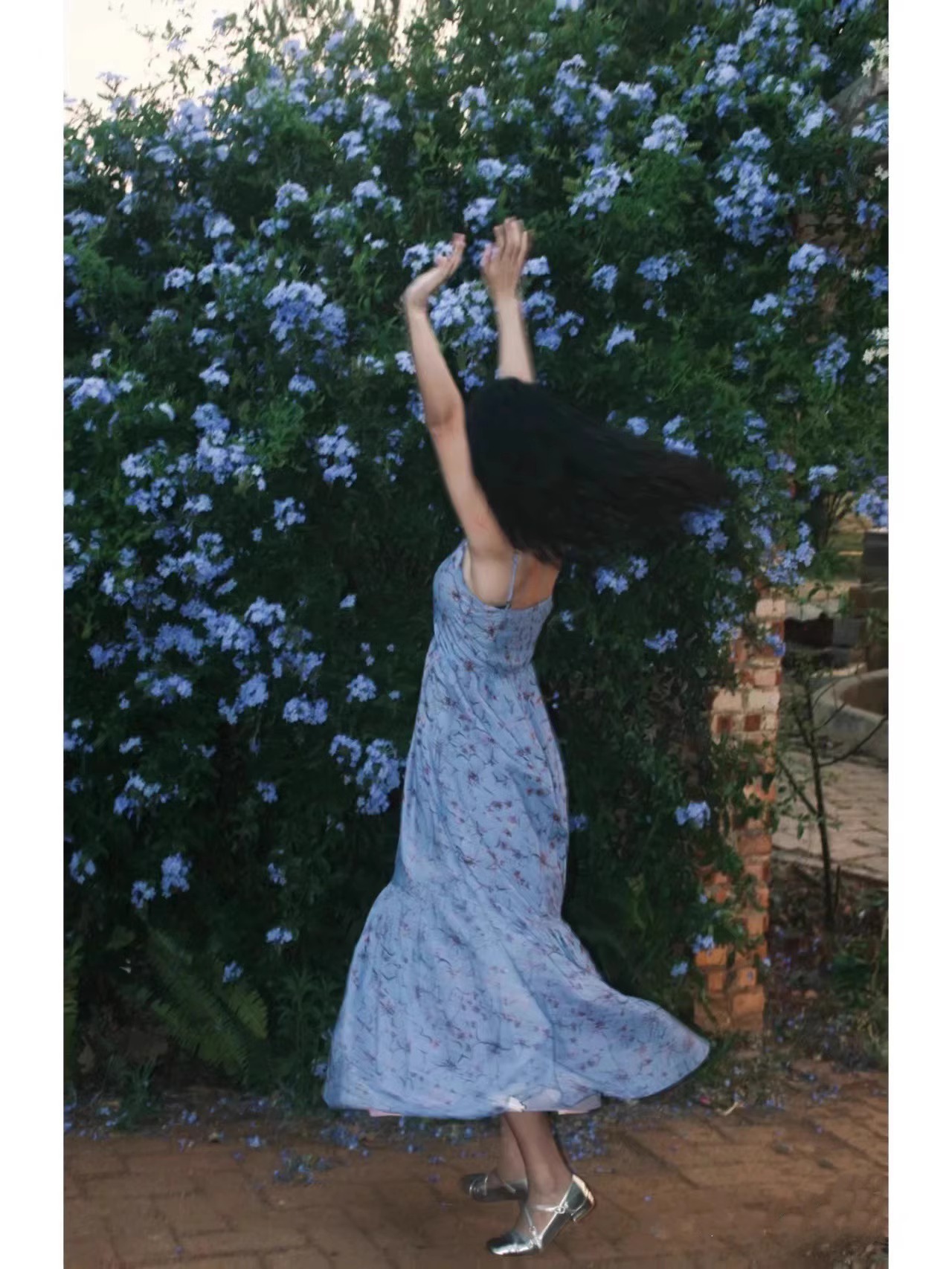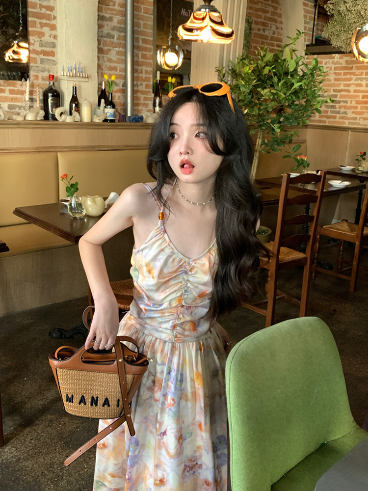 (オリジナル品質) 砕花ストラップワンピース2025新型夏清純系デート着ロングスカート女