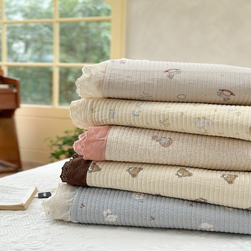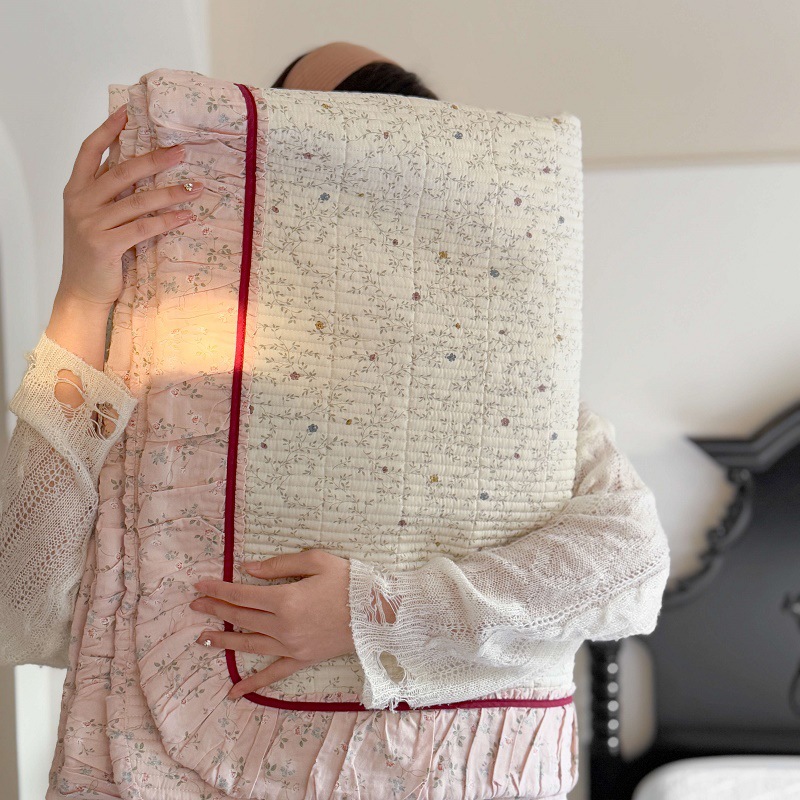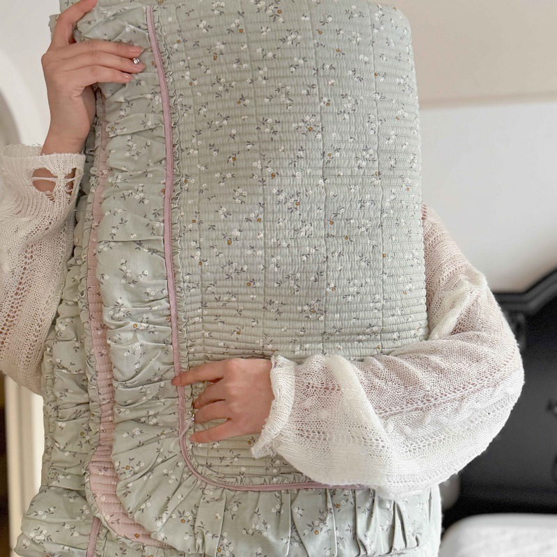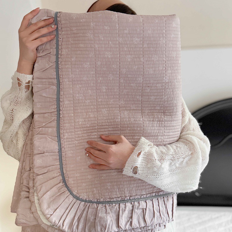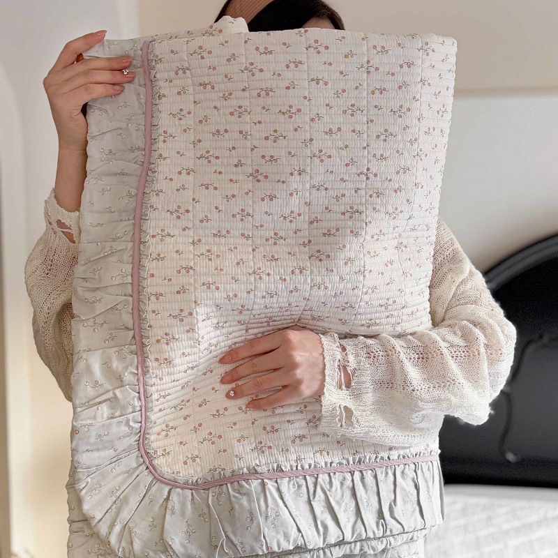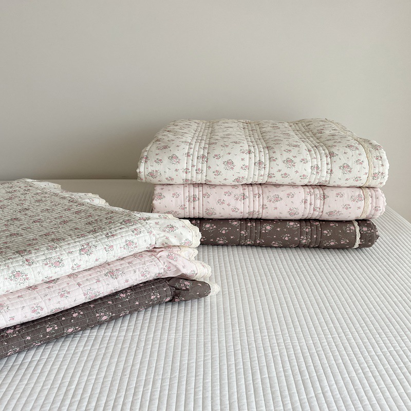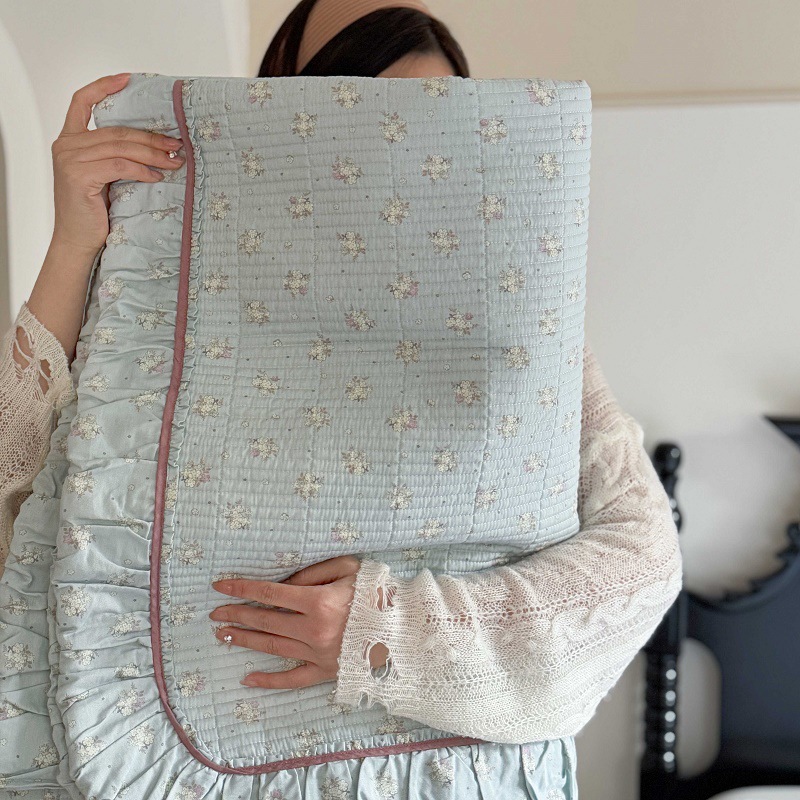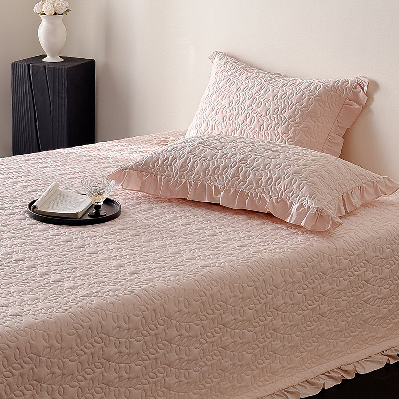高品质出口韩国工艺款床盖三件套,面料全棉,舒适透气,采用高温砂洗,柔软亲肤,压织带的花苞型花边,更添几分浪漫与温柔
