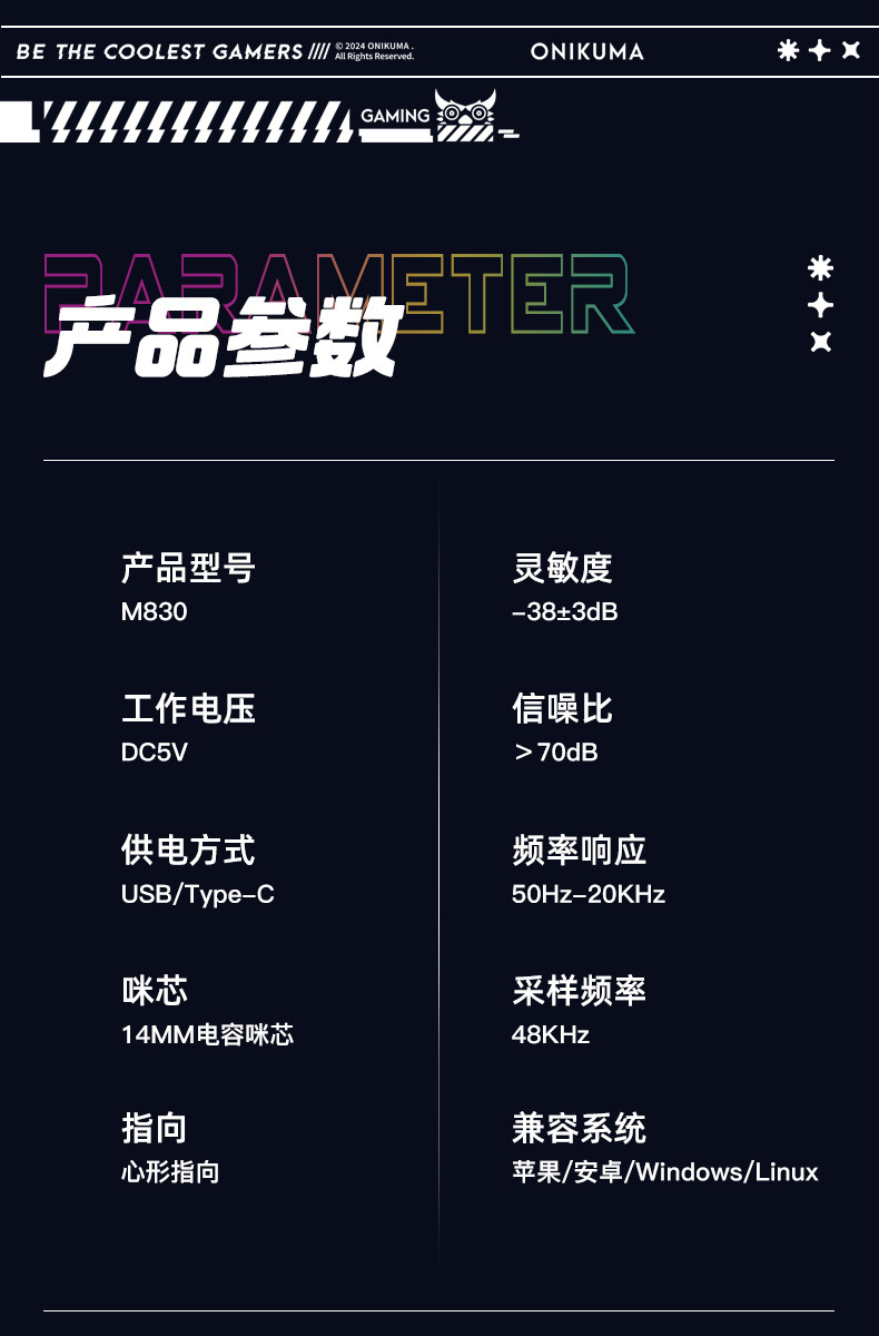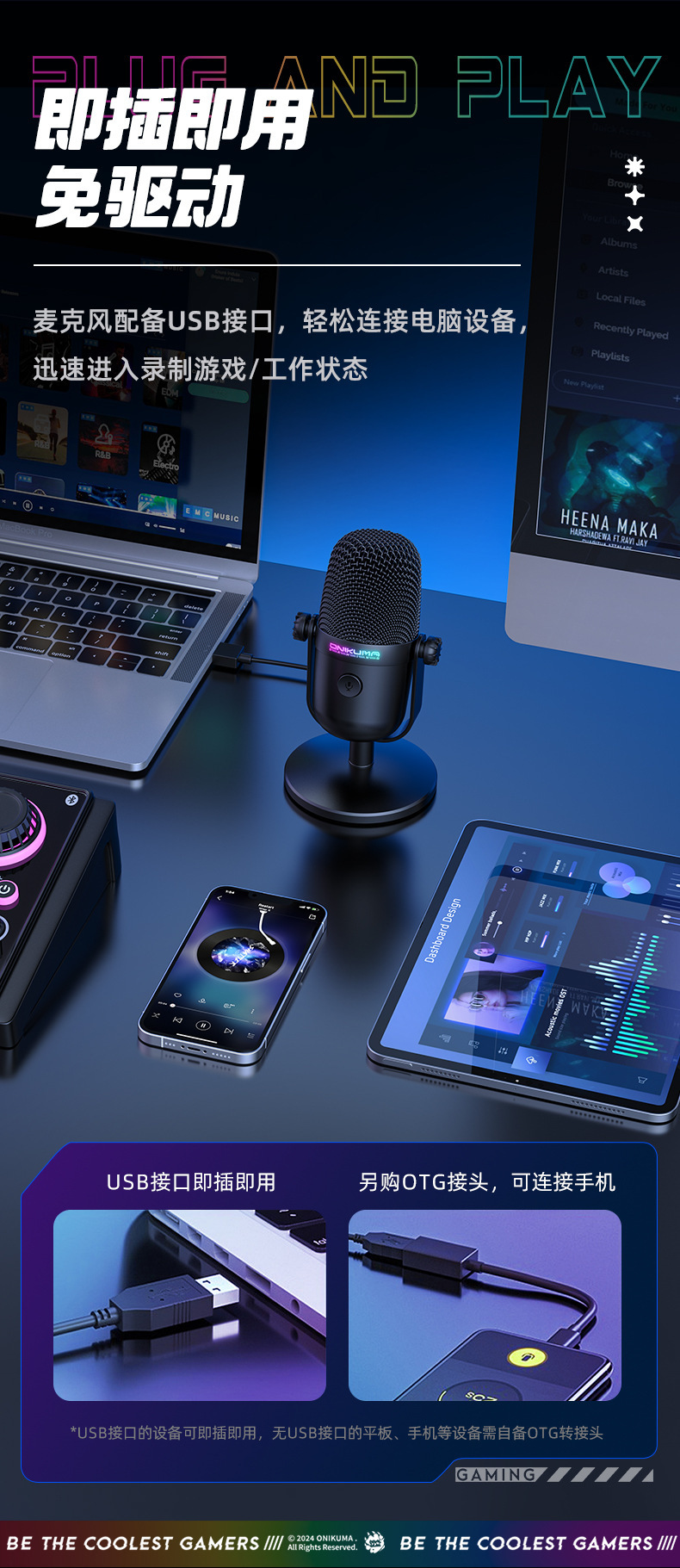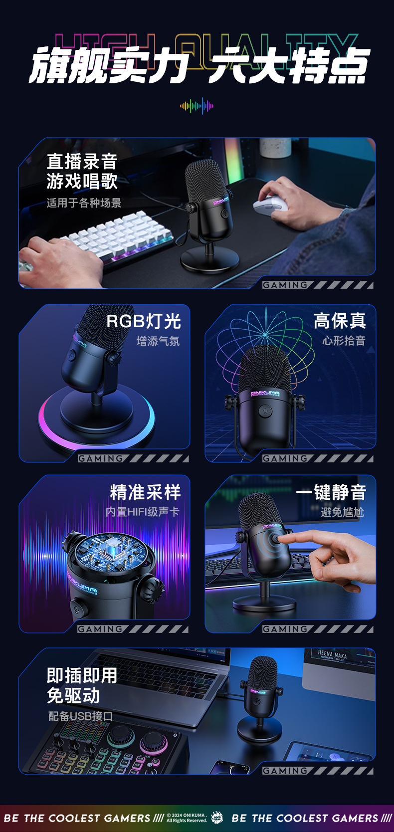 クロスボーダー新型ONIKUMA M830 USBコンピュータゲームマイク録音吹き替えライブマイク