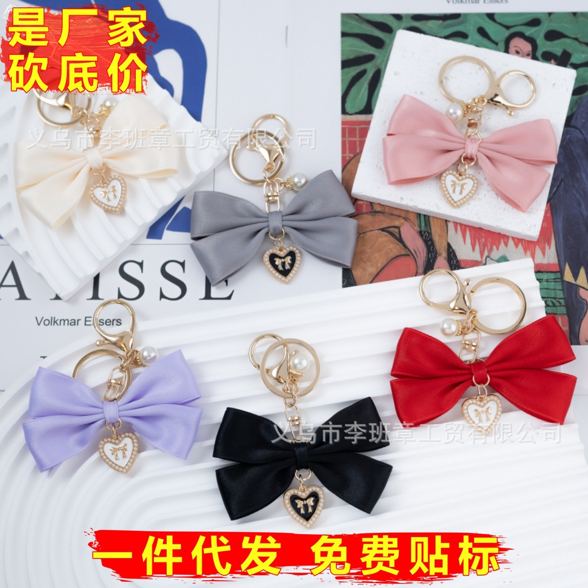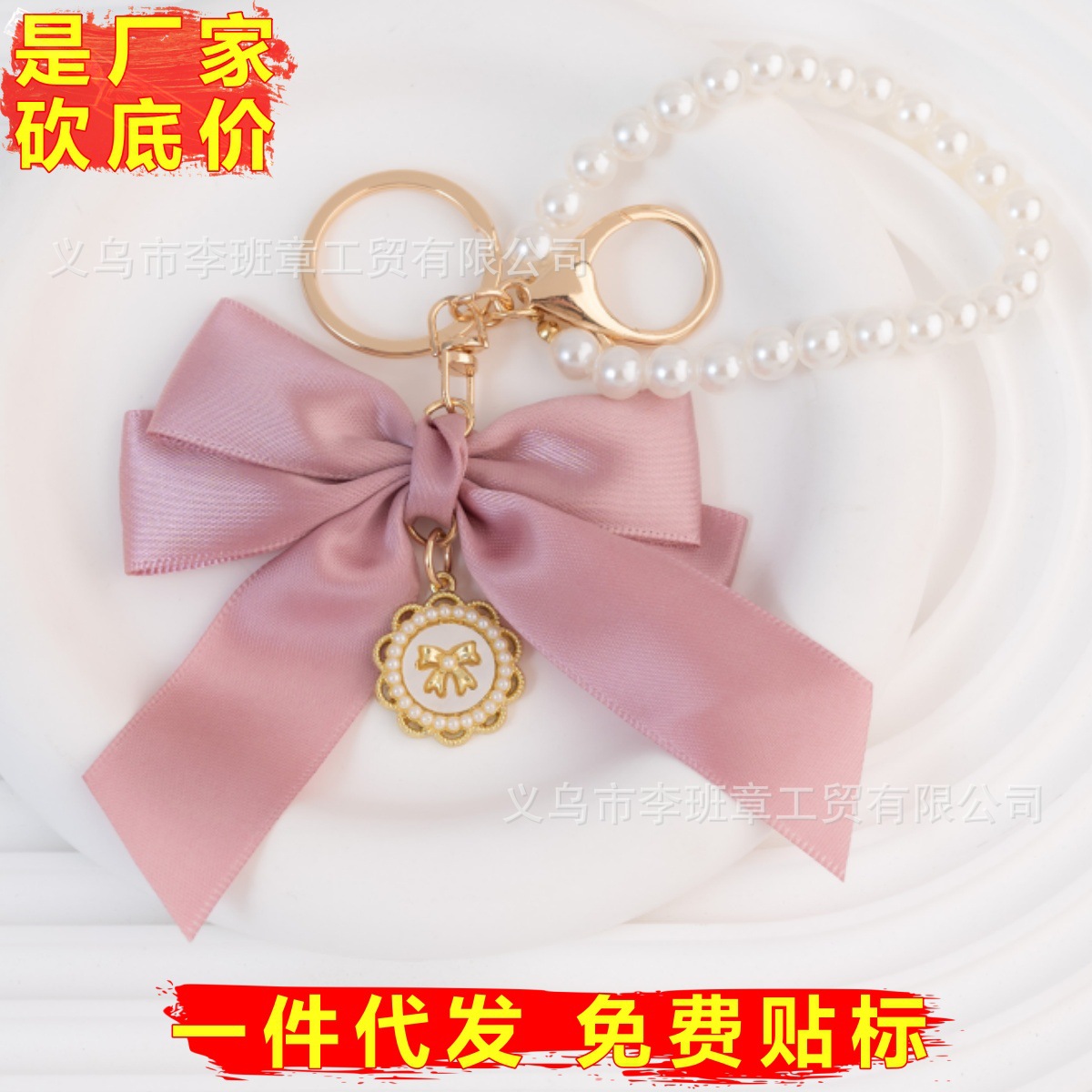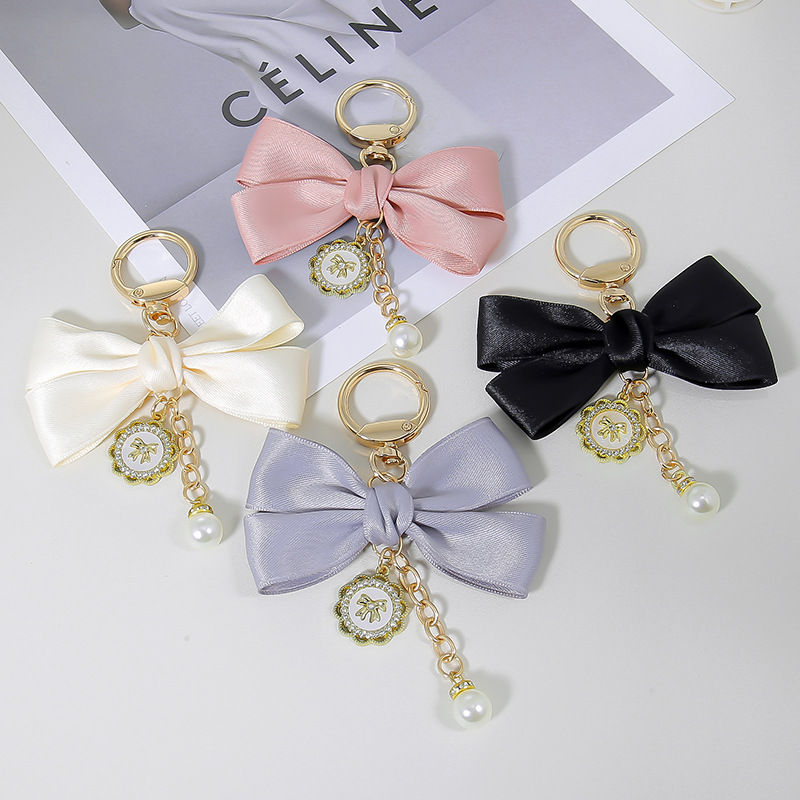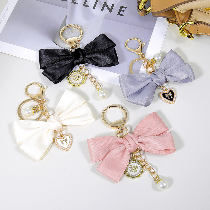 ファッション真珠愛ペンダントリボン蝶結びキーホルダー女の子diyバッグ包装アクセサリー