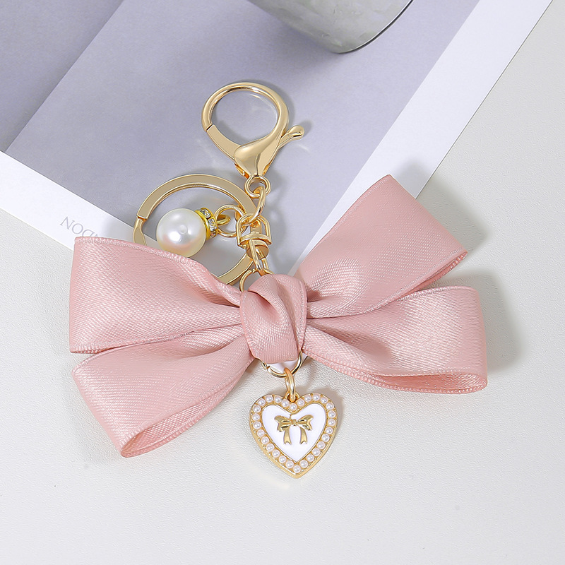 ファッション布芸リボンリボンキーホルダーinsリボン携帯電話ケースアクセサリーペンダント真珠桃心バッグペンダント