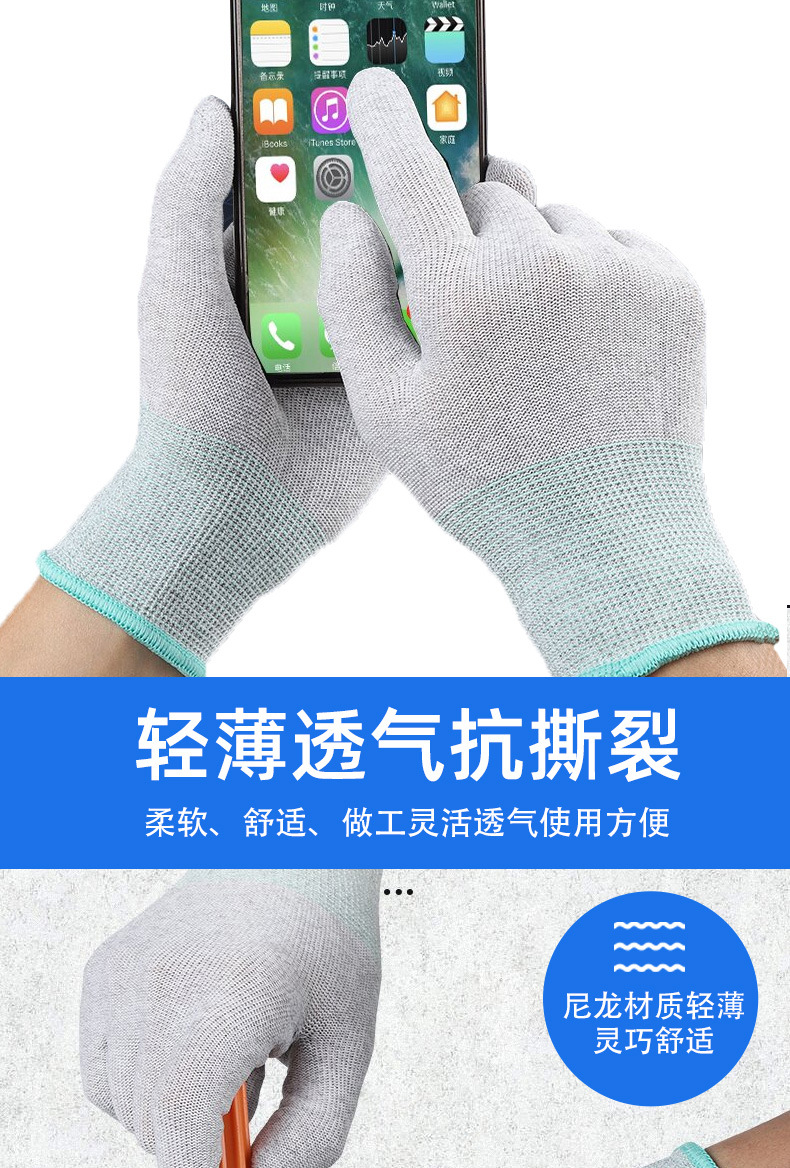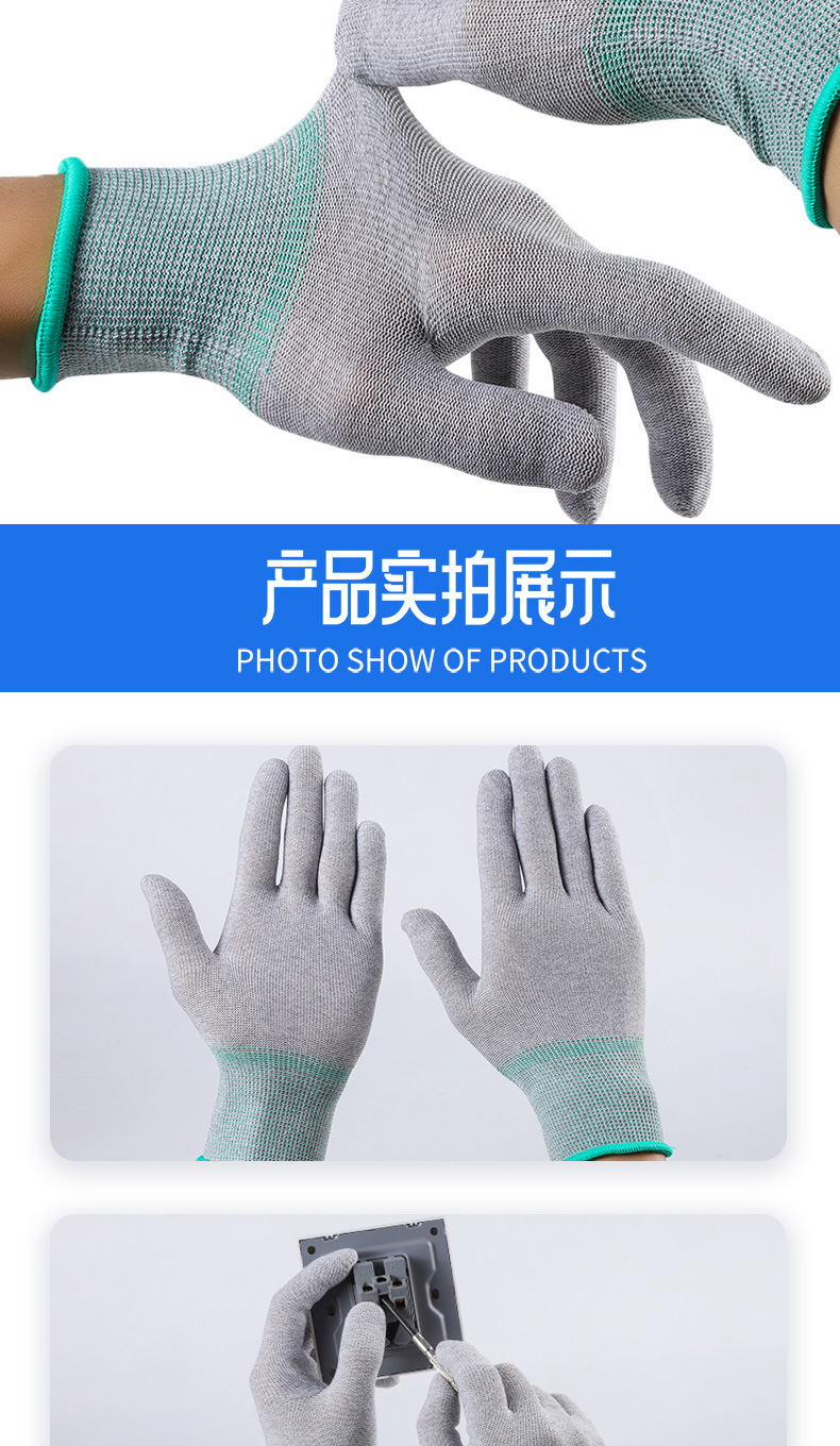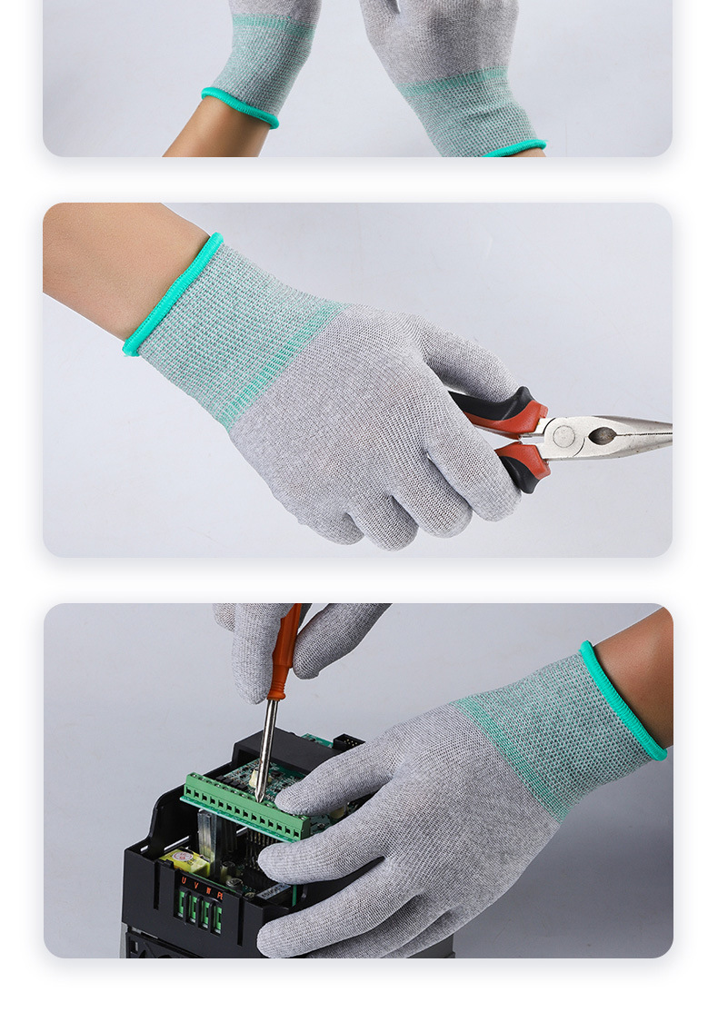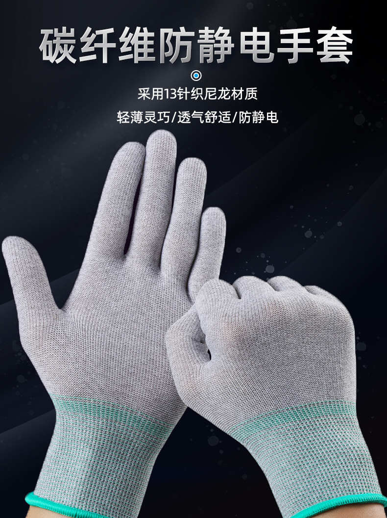 炭素繊維静電気防止労働保護手袋導電糸電子工場耐摩耗性クリーン通気現場の仕事メーカー卸売り