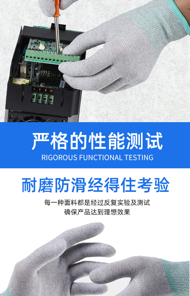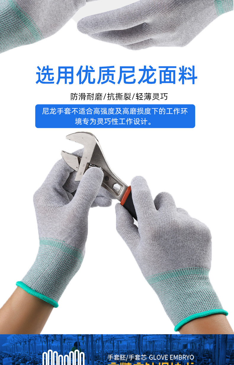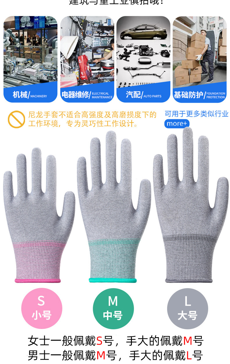 静電気防止puは手袋の炭素繊維を塗って手のひらのナイロンを塗って通気します。