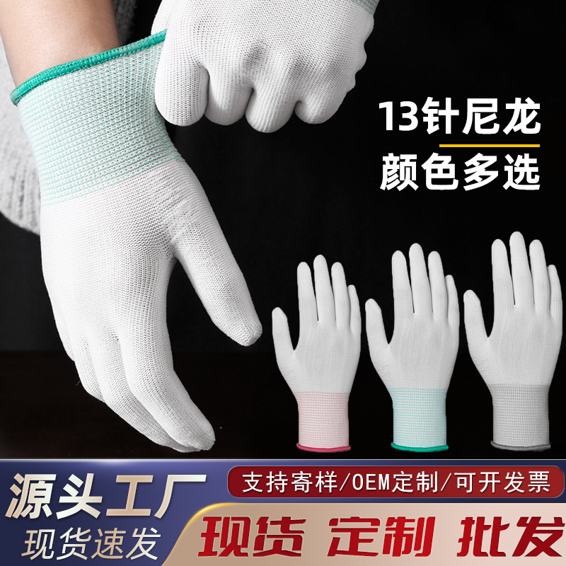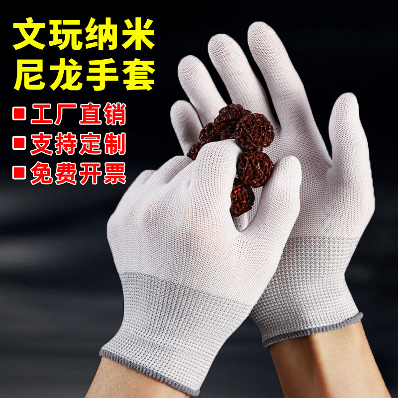 ナノナイロン製文具用手袋、通気性、高弾性、研磨用、13針、白、労働保護作業用手袋、卸売