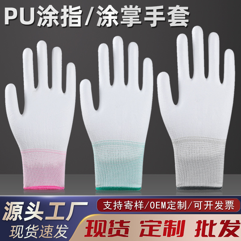 PU涂掌手套无尘防静电涂层劳保工作耐磨防滑透气13针白色尼龙涂指