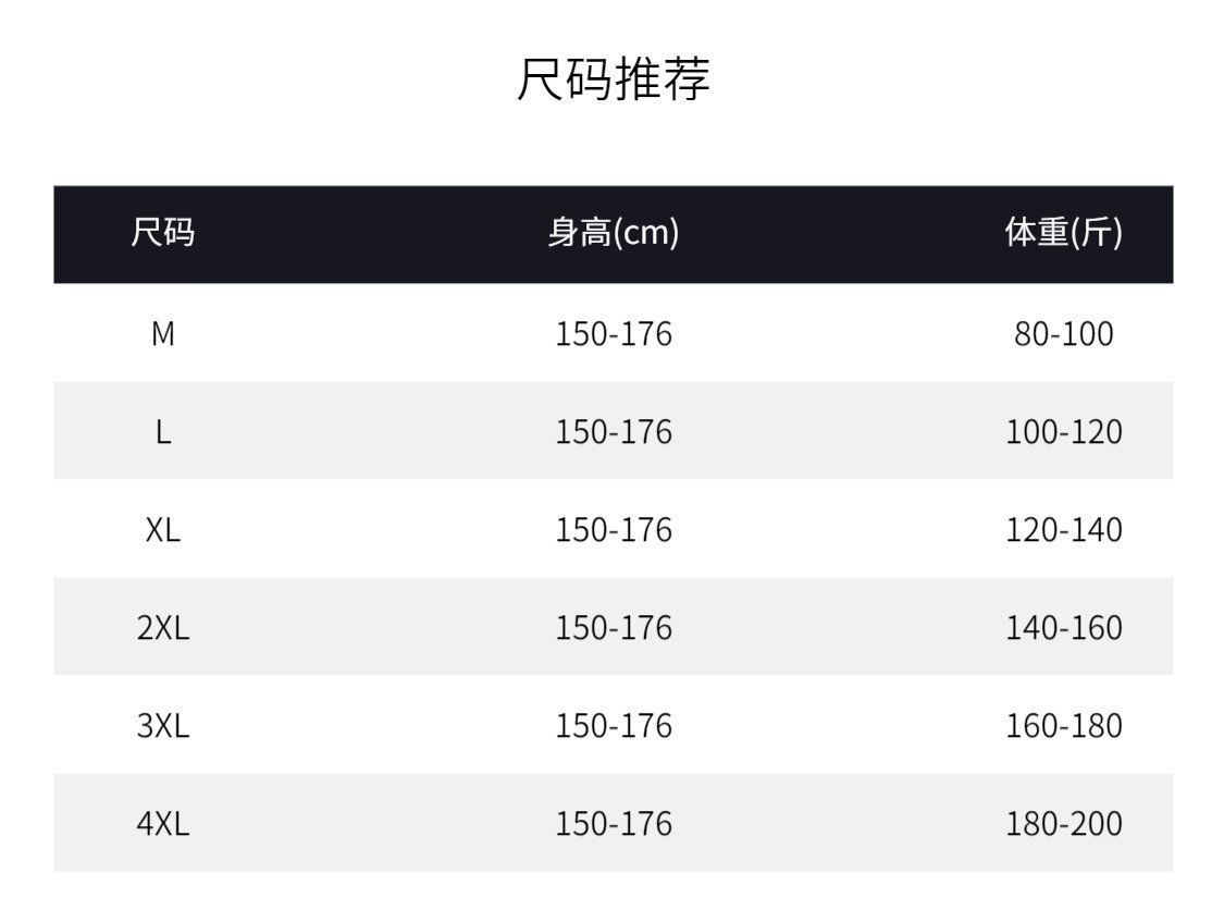 M推奨事項40-50kg,L推奨事項50-60kg,XL推奨60-70kg,2XL 推奨 70-80kg,3XL 推奨 80-90kg,4XL推奨90-100kg