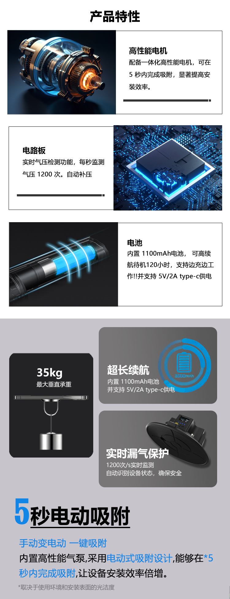 新款运动相机电动摄影吸盘 长续航自动补压相机电动吸盘支架底座