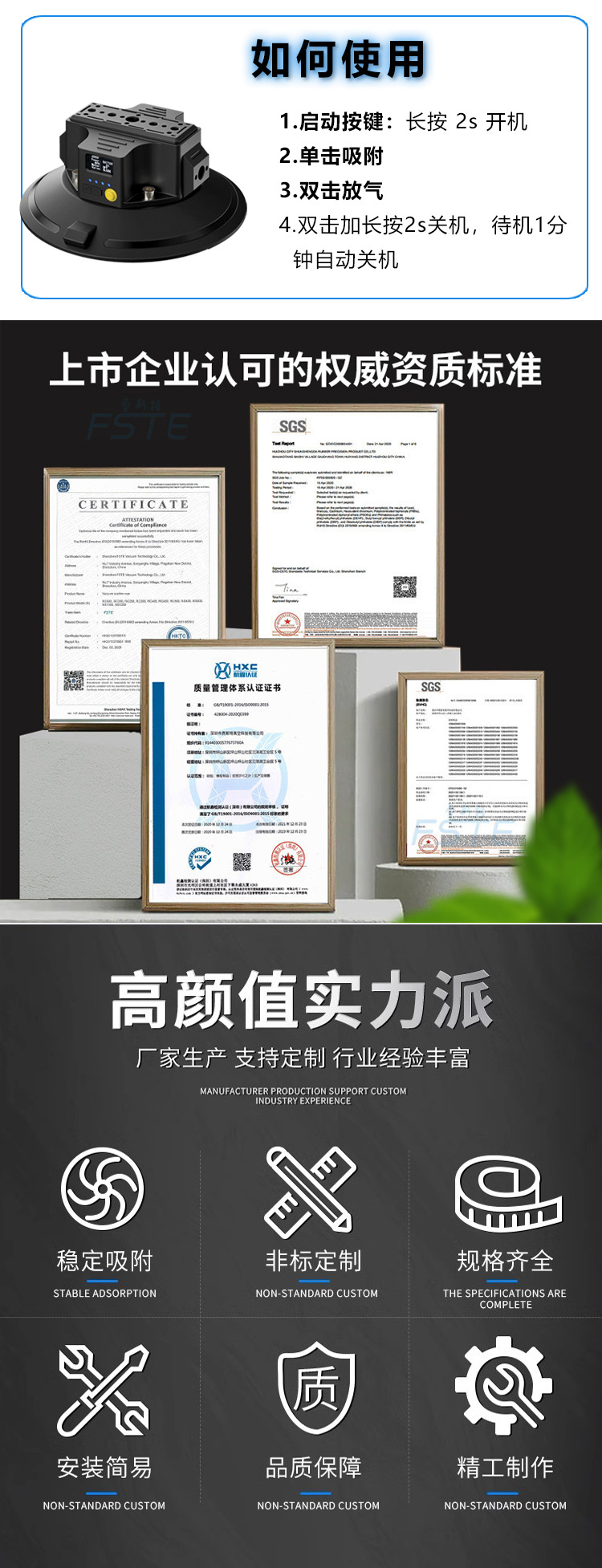 FSTEガラス吸盤強力300MMシリコン吸盤ガラス鉄板ステンレス板真空吸盤エア