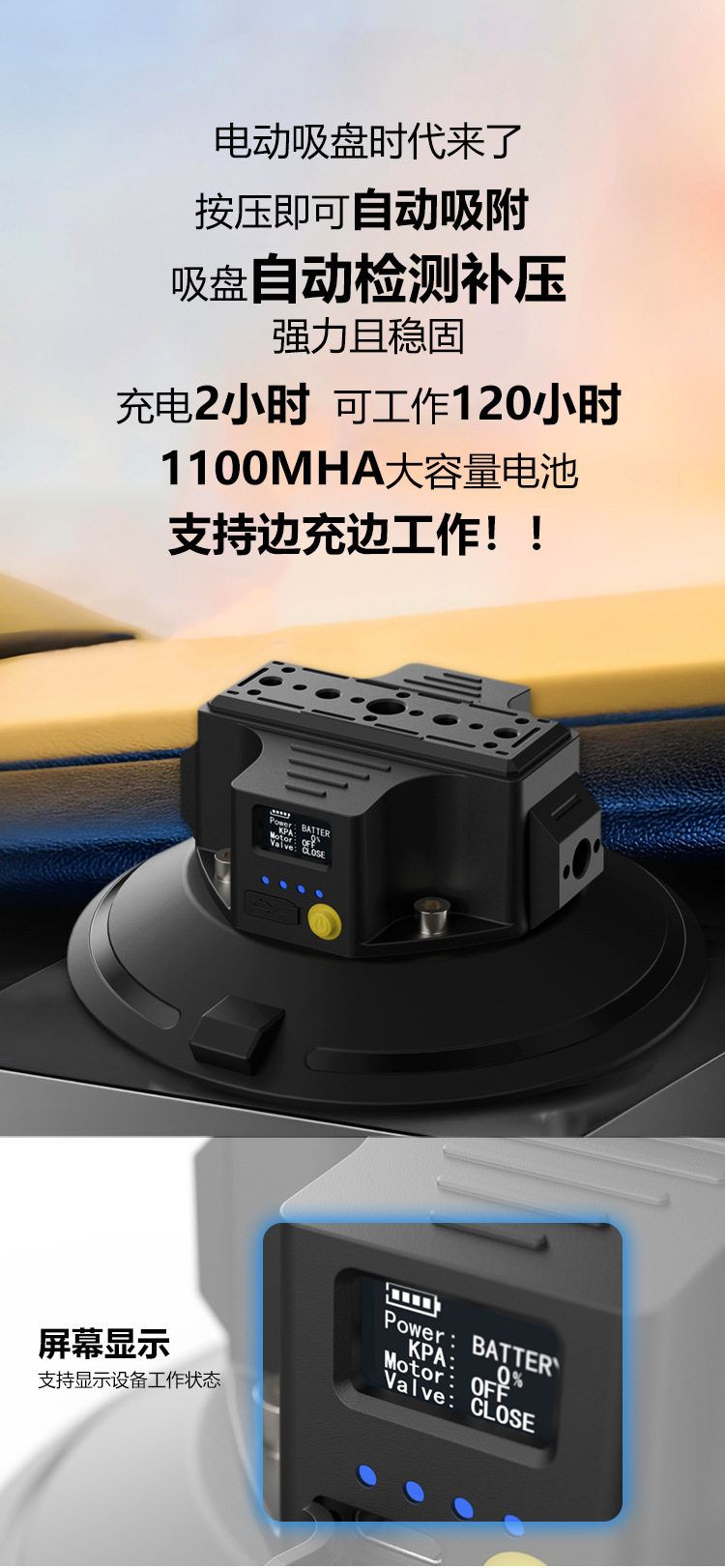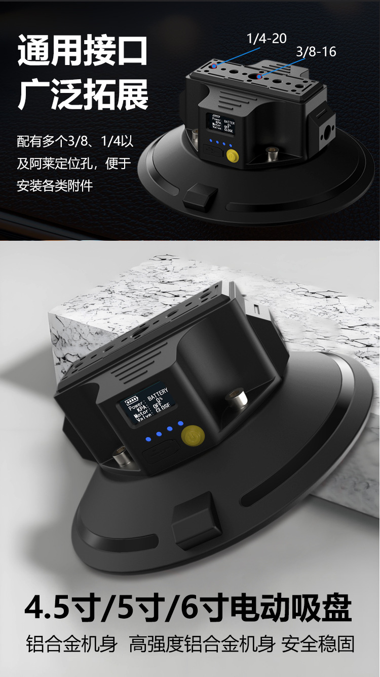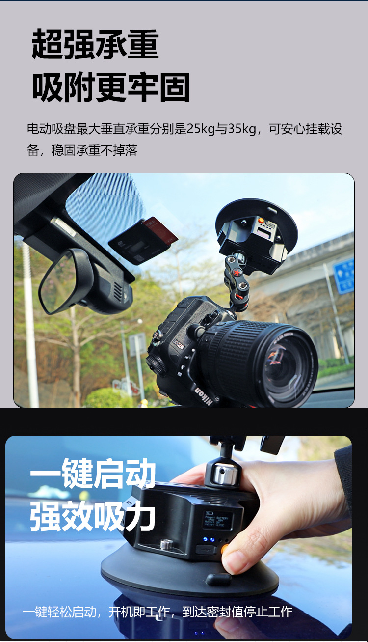 锐创高承重摄影相机电动吸盘车载内外强力吸盘汽车拍摄支架底座