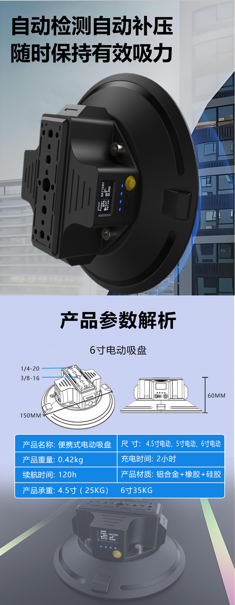 石井純正電動吸盤ガラス真空吸盤強力自動給気搬送タイル吸盤 6106