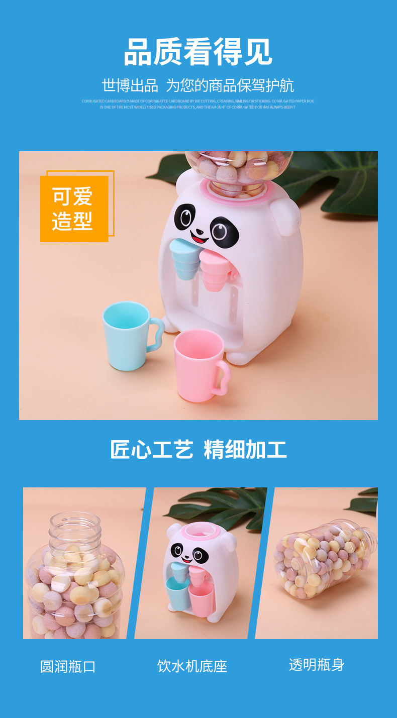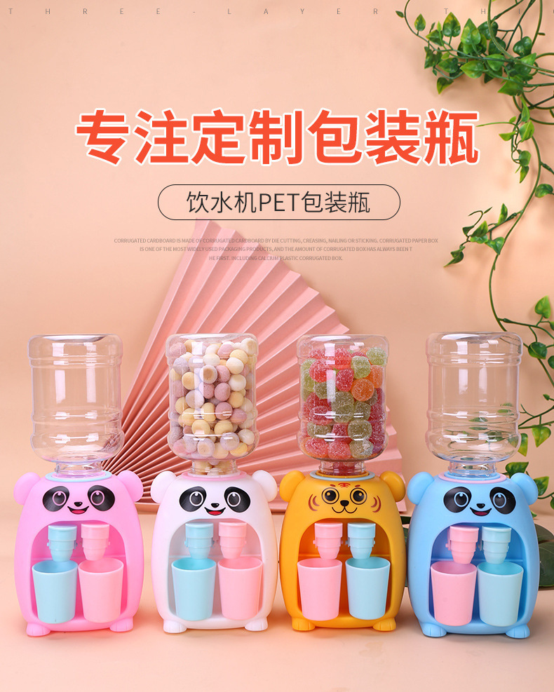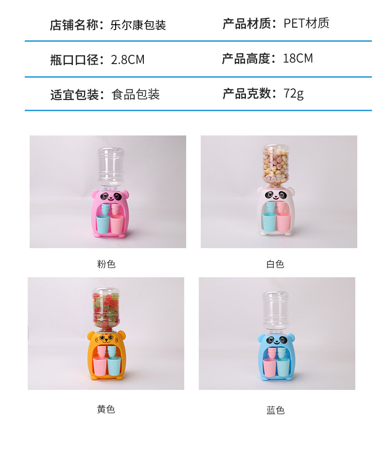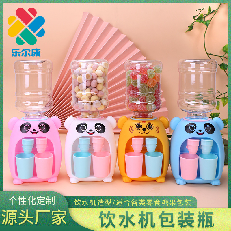 漫画プラスチック包装ボトルウォーターディスペンサーペットキャンディージャービスケットパフスナックボトルパンダおもちゃジャーメーカー