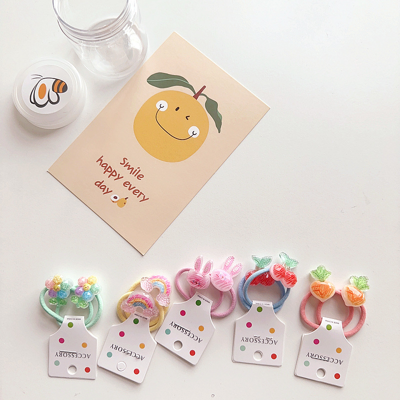 新型の韓系の田園の大根のウサギのカラーの七色の花の子供の清新な対の皮の筋の5セットの箱入りの髪飾り