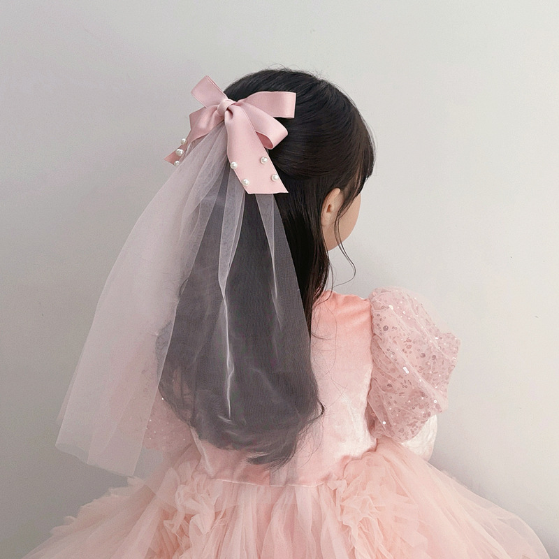 新商品の超仙パーティーのお姫様風の玉の蝶結びの網の子供のベールの頭の糸の圧力はトップを挟んで髪飾りを挟みます。