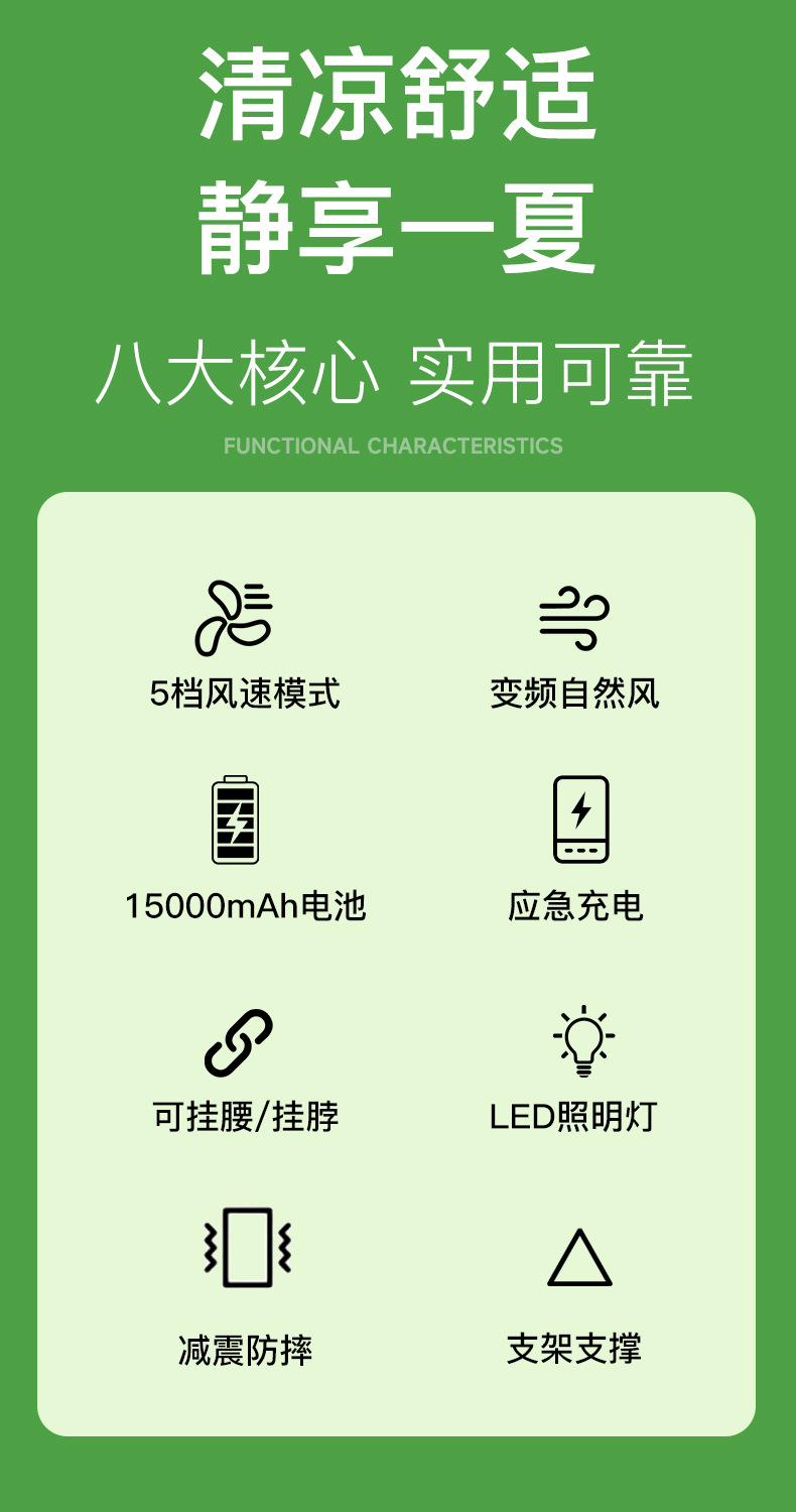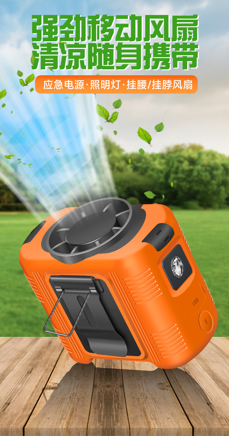 国境を越えた新型携帯多機能充電モデル長航続usbファン首小ファン屋外掛け腰ファン