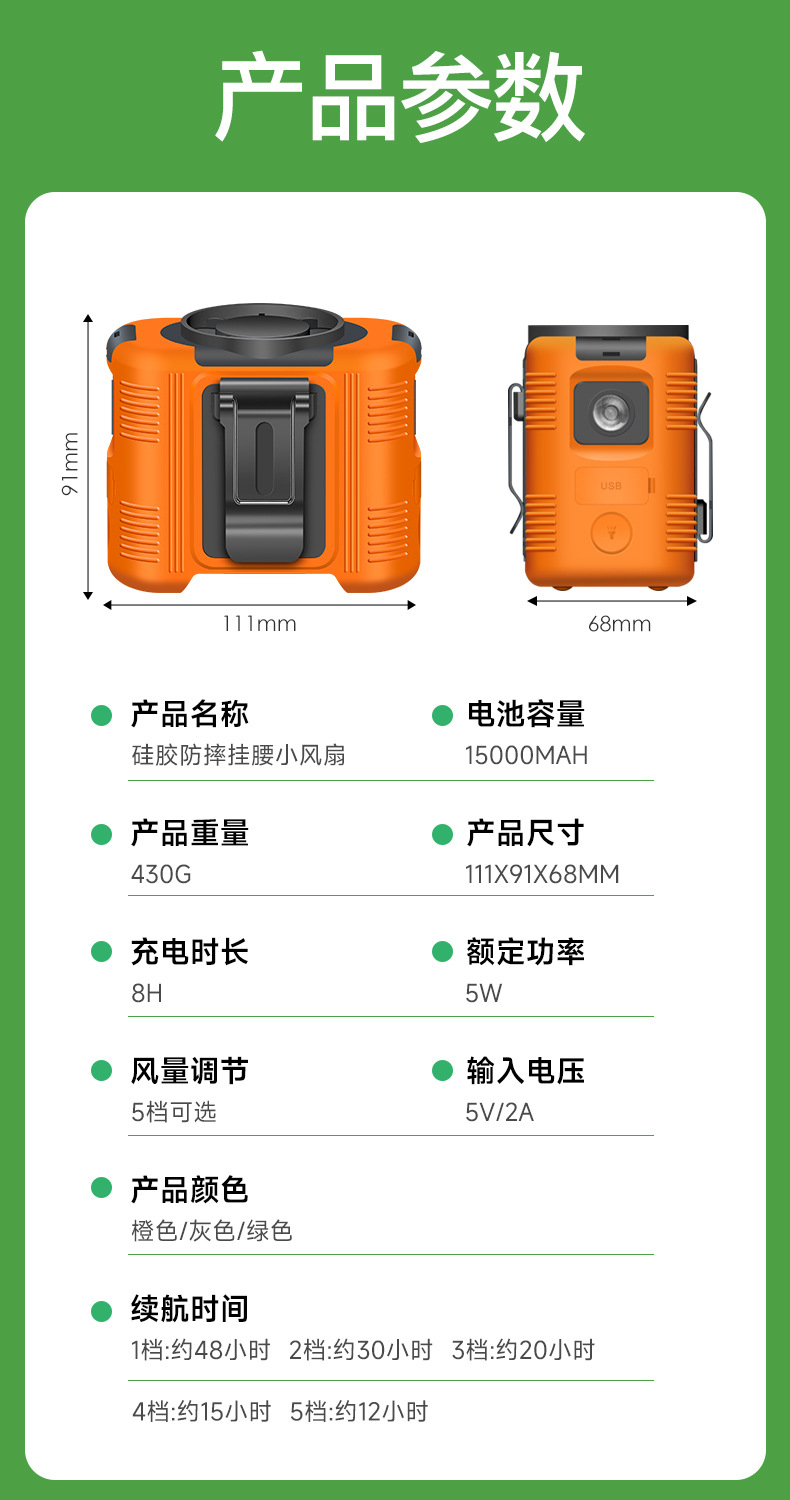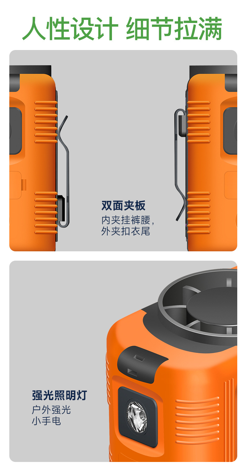 工事現場は腰にUSBファンをつけて腰に携帯する多機能クリップ式首をつけて暑さを下げる神器