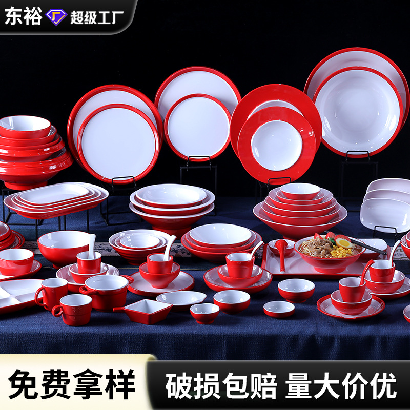 紅白包辺メラミン食器セットホテルホテルの耐摩耗性模造磁器料理皿前菜皿果物皿
