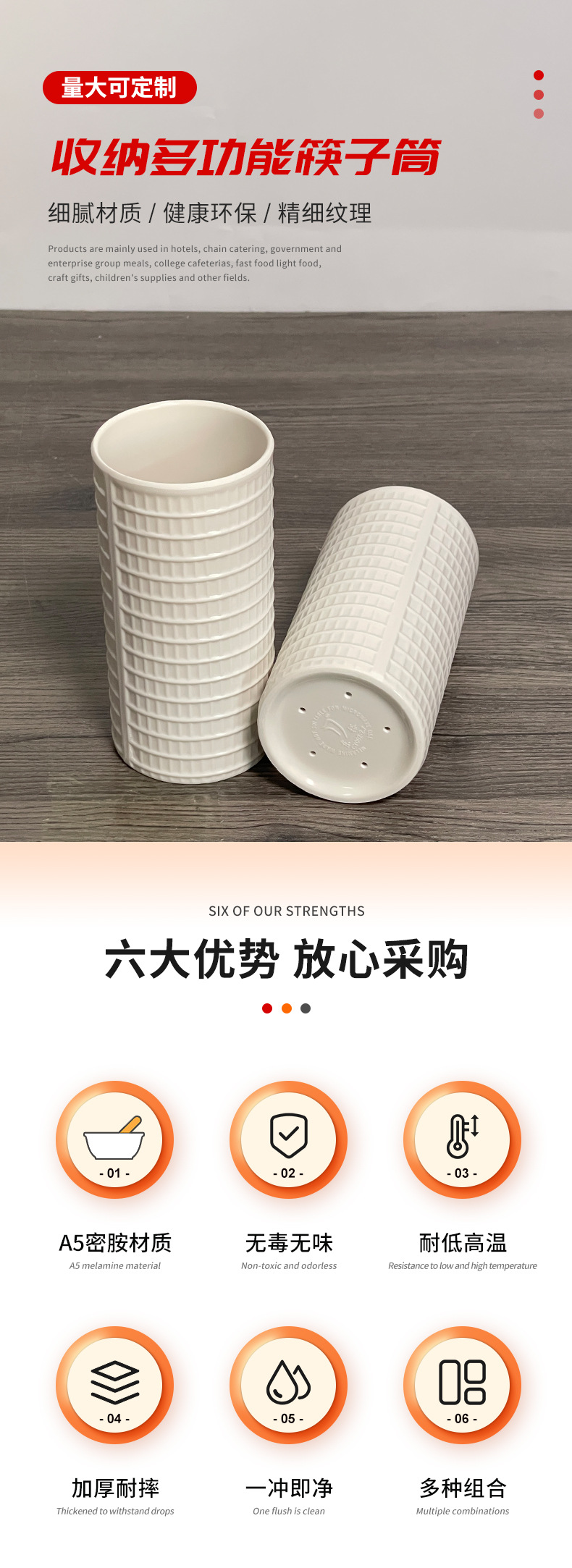 新中国式メラミン滑り止め箸筒水切り穴付き箸籠模造磁器レリーフ収納筒キッチンナイフフォークスプーン収納