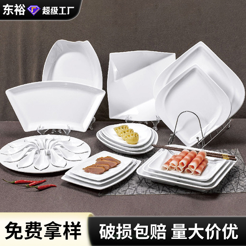 食品グレードのメラミン洋食プレート餃子プレートスクエアステーキプレートバーベキューショップ中華風純白鍋ホテルプレート