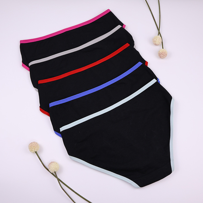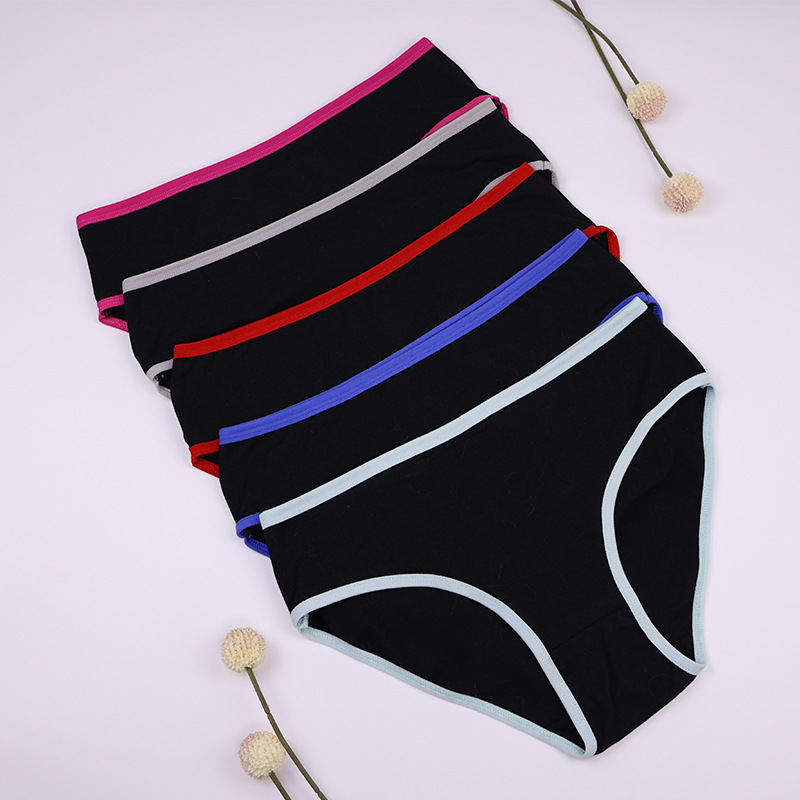 欧美跨境女士内裤 透气纯色少女女士三角裤密线小橡筋内裤女批发