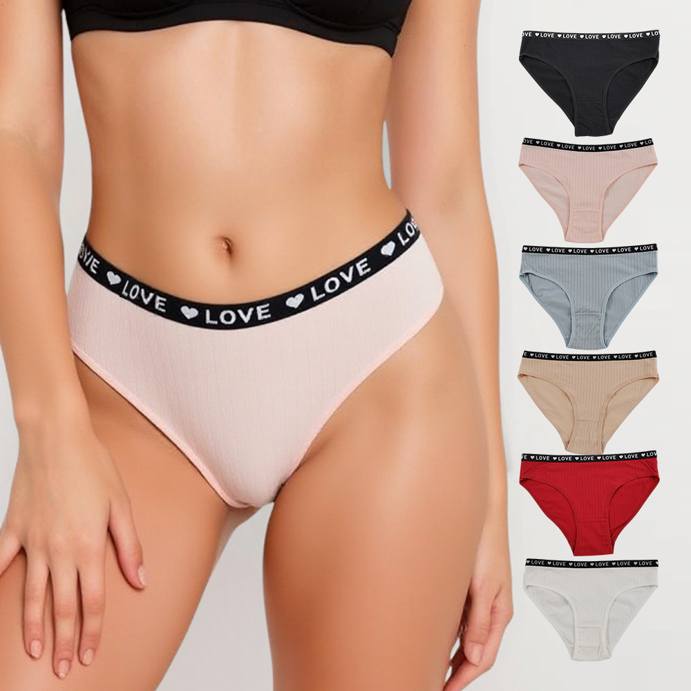 跨境女士纯棉内裤 love运动少女三角裤纯色大码40支抽针棉布内裤