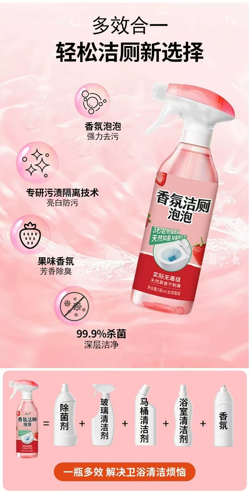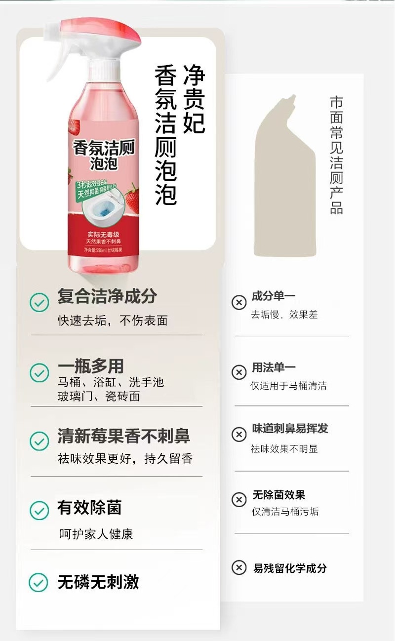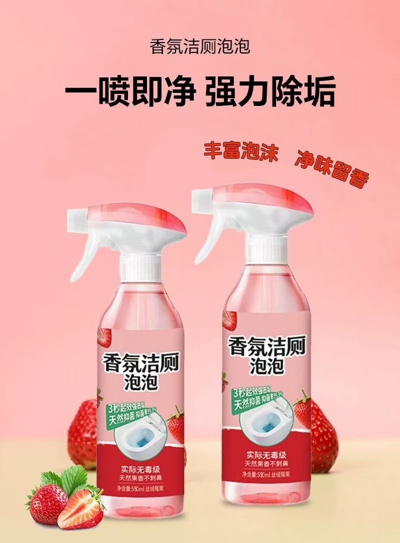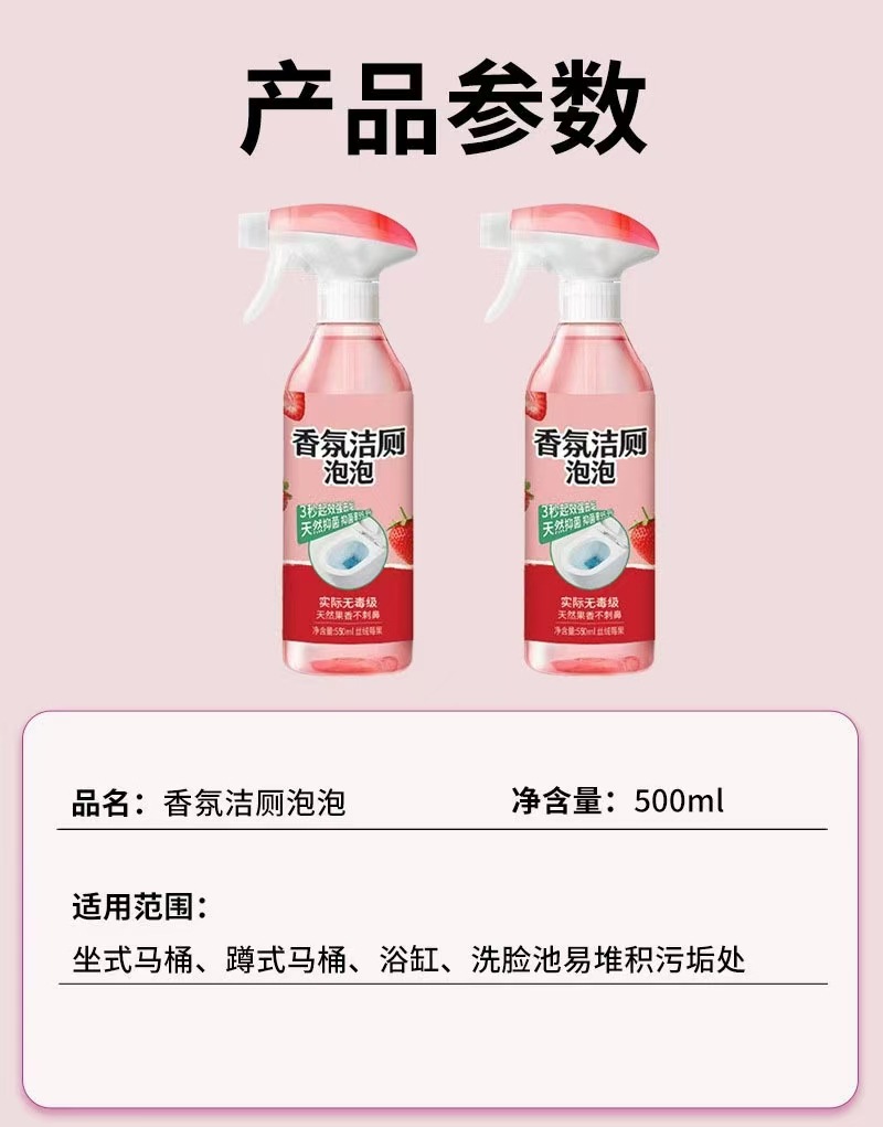 家庭用トイレ用新香料トイレ洗浄泡剤、洗浄・消臭・洗浄剤、水垢除去、フレッシュで消臭、メンテナンス、防カビ