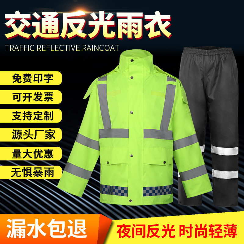 外贸批发反光雨衣雨裤套装户外分体交通执勤高速聚酯纤维雨衣双层