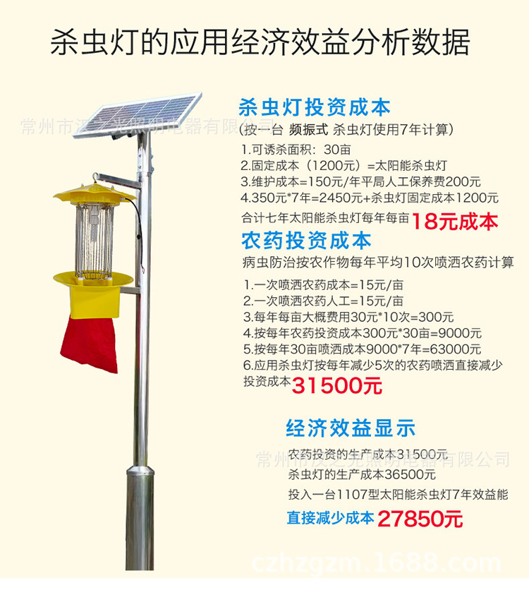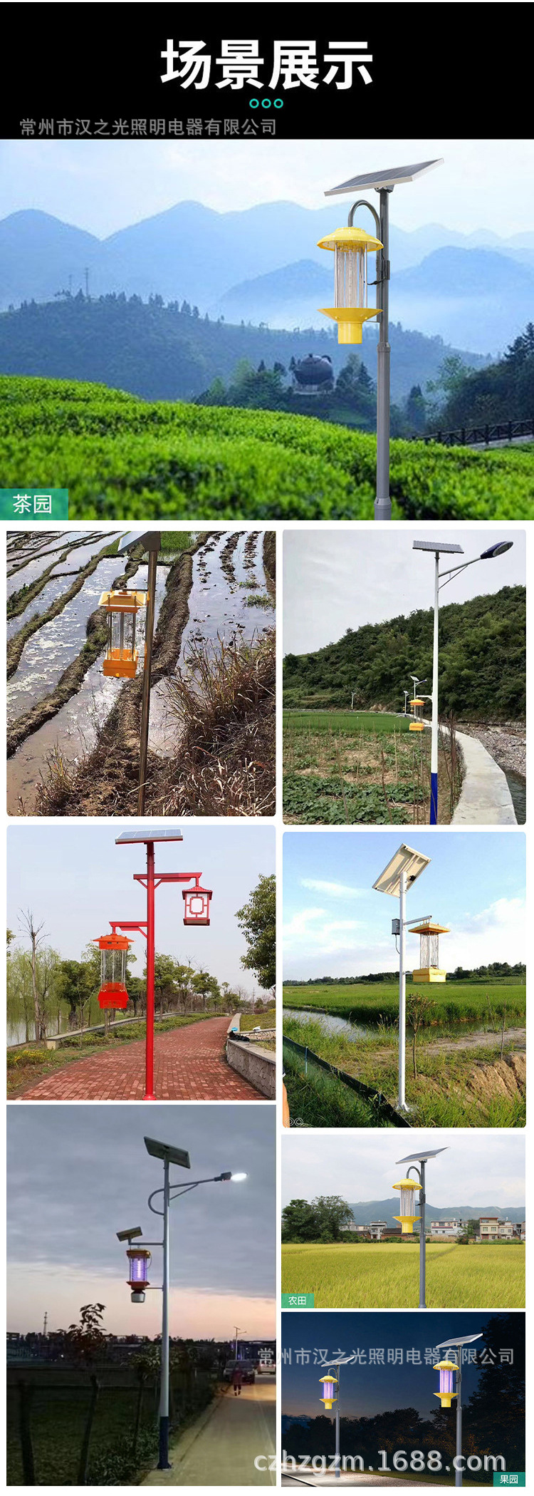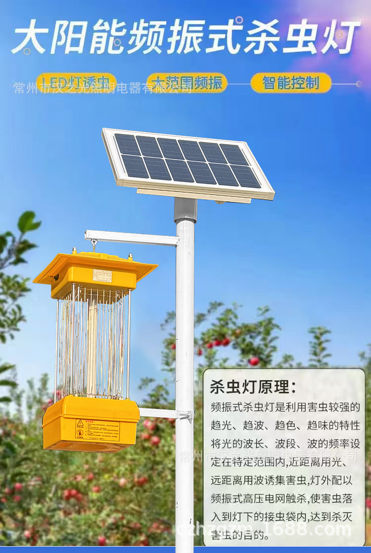 太陽エネルギー殺虫灯屋外果樹園茶園減虫農業用養魚池養殖田んぼ周波数振動式蛾減蚊灯