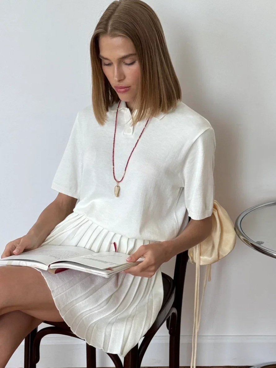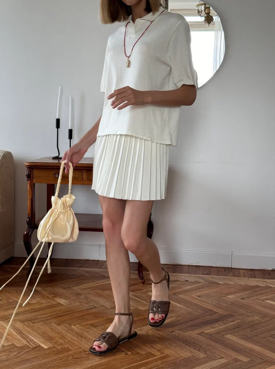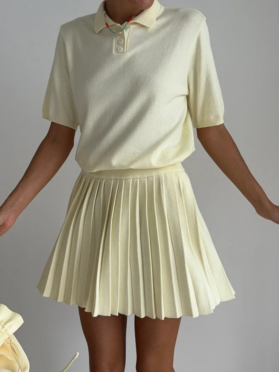欧美减龄百褶裙套装女春夏2025新款显瘦显高百搭半身裙纯色两件套