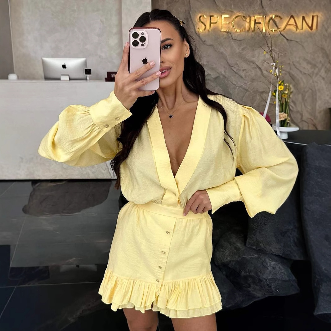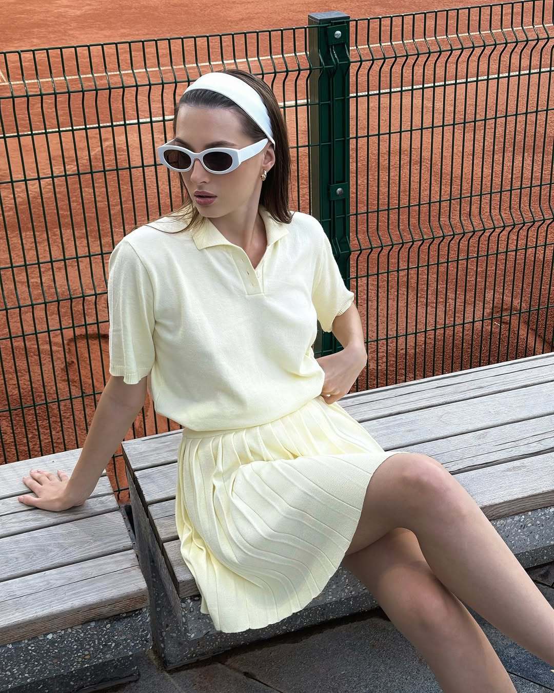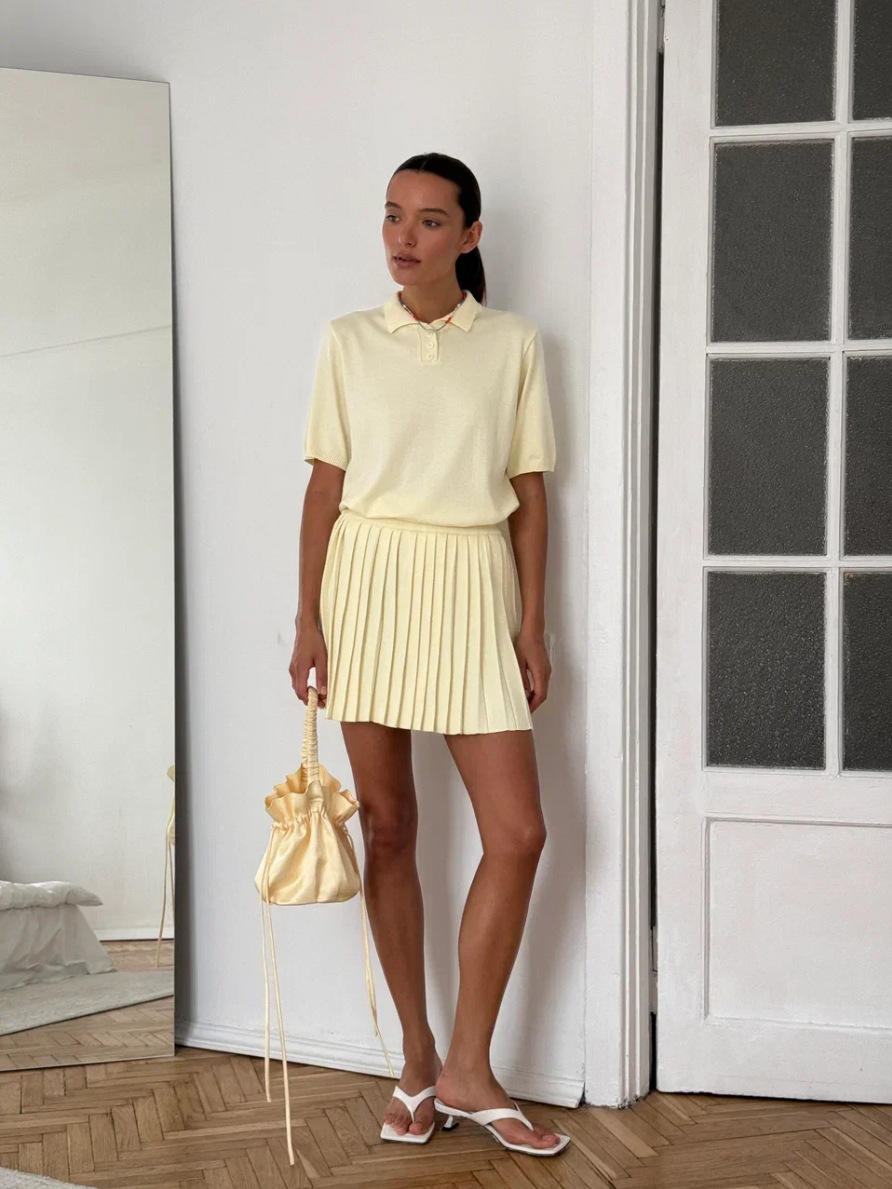欧美减龄百褶裙套装女春夏2025新款显瘦显高百搭半身裙纯色两件套