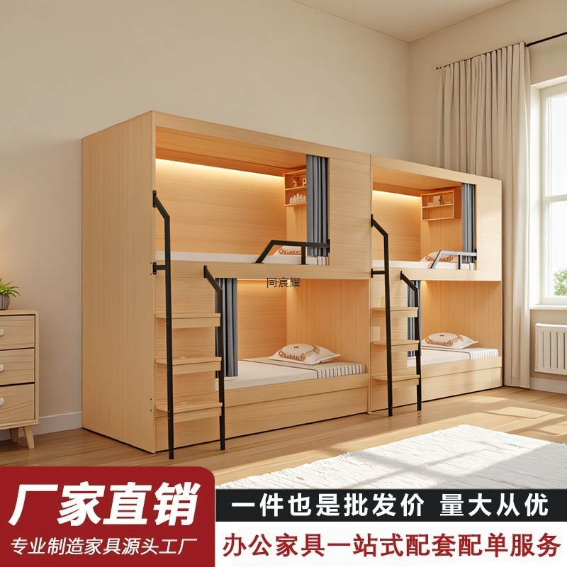 广东青年公寓床太空舱民宿全包床双层实木床员工宿舍床学生高低床