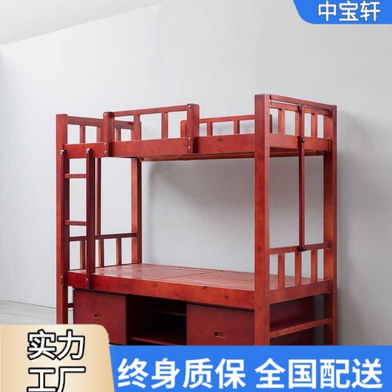 実木製営具二段ベッド営房上下高低床営房寮ベッド営房シングルベッド底付きキャビネット