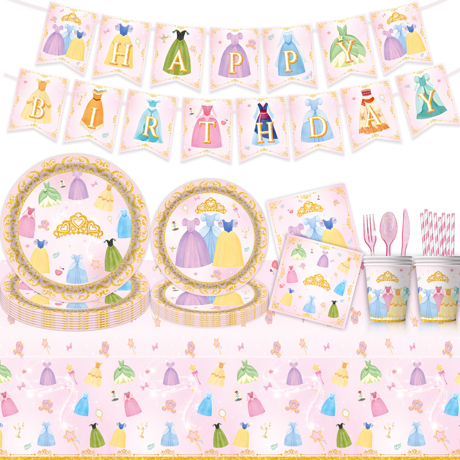 Amazon 新しいプリンセステーマ女の子の誕生日パーティー食器使い捨てテーブルクロスティッシュペーパー紙皿装飾用品