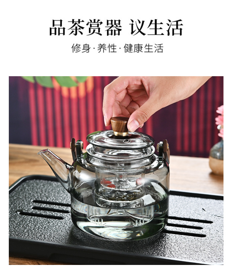 ガラス煮ティーポット高温明火湯沸かし器囲炉電気陶炉提梁蒸煮一体泡ティーポット茶器