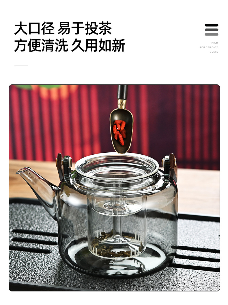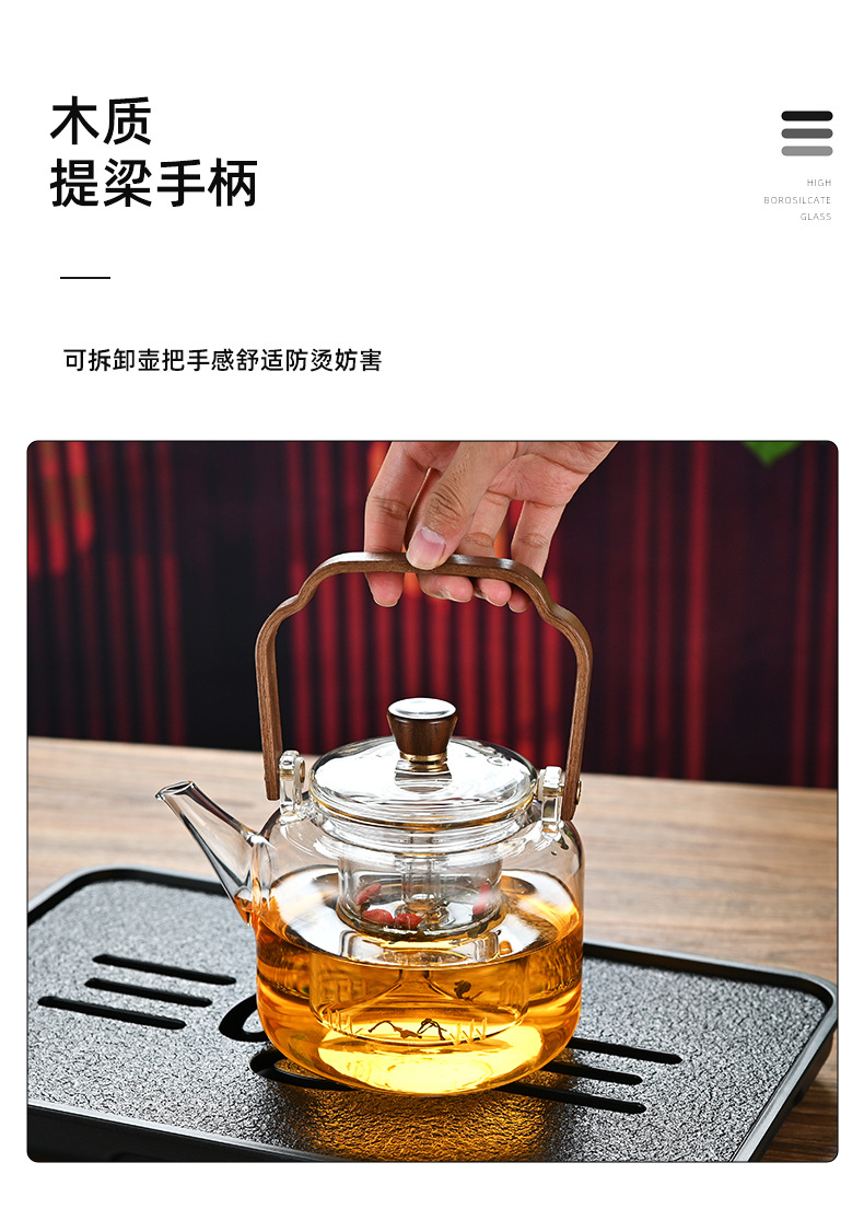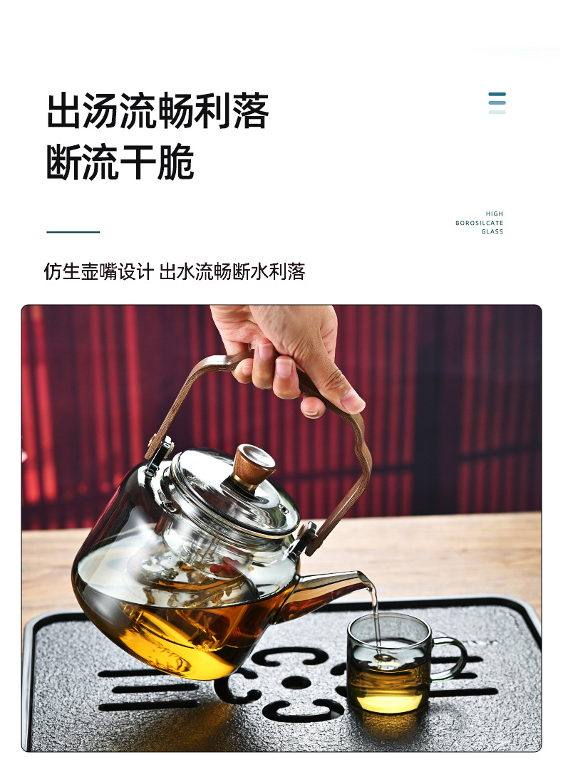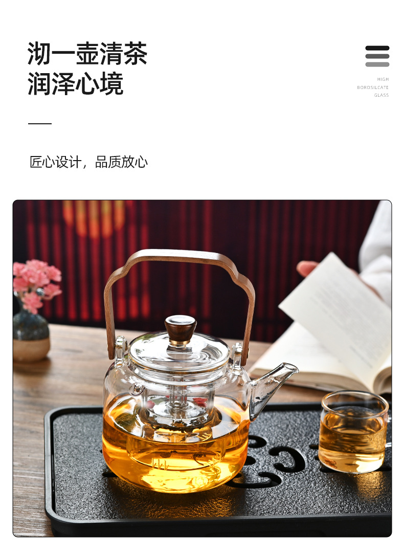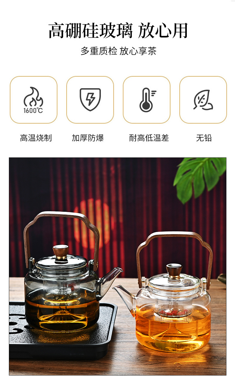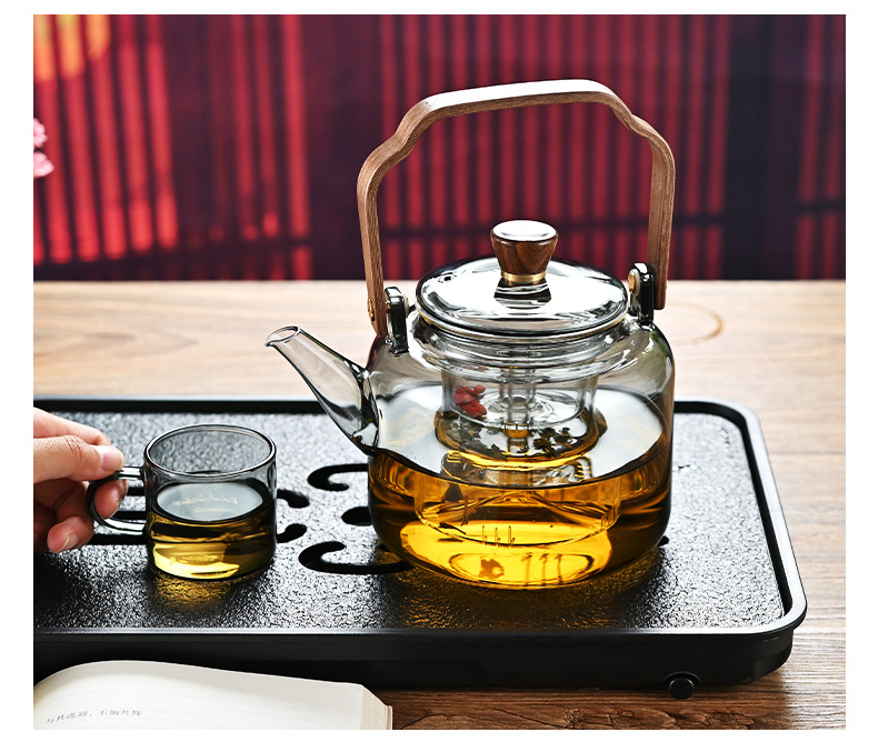 囲炉煮茶家庭用蒸煮ティーポット卸売り高ホウ素シリコン泡ティーポットガラス耐高温提梁ポット