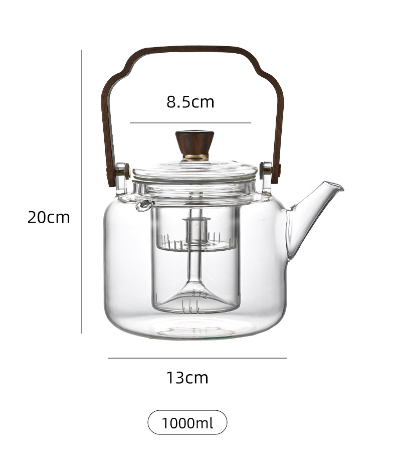 ガラス製ティーポット、ステンレス製フィルター、茶水分離、電気陶器コンロで煮茶、大容量、耐熱性、耐熱茶器