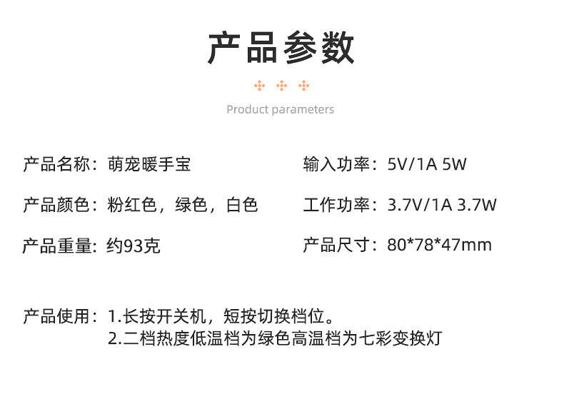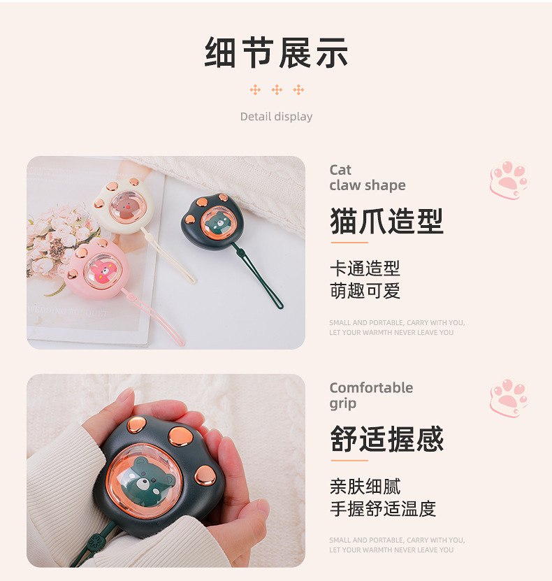 抖音同款冬季便携防爆暖手宝萌宠迷你电暖手宝 USB充电猫爪暖手宝