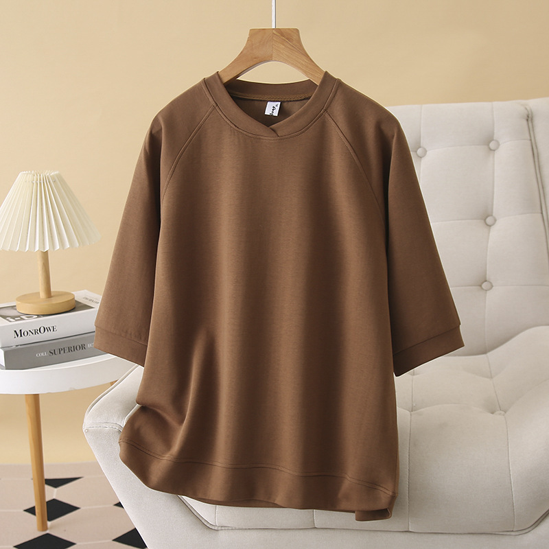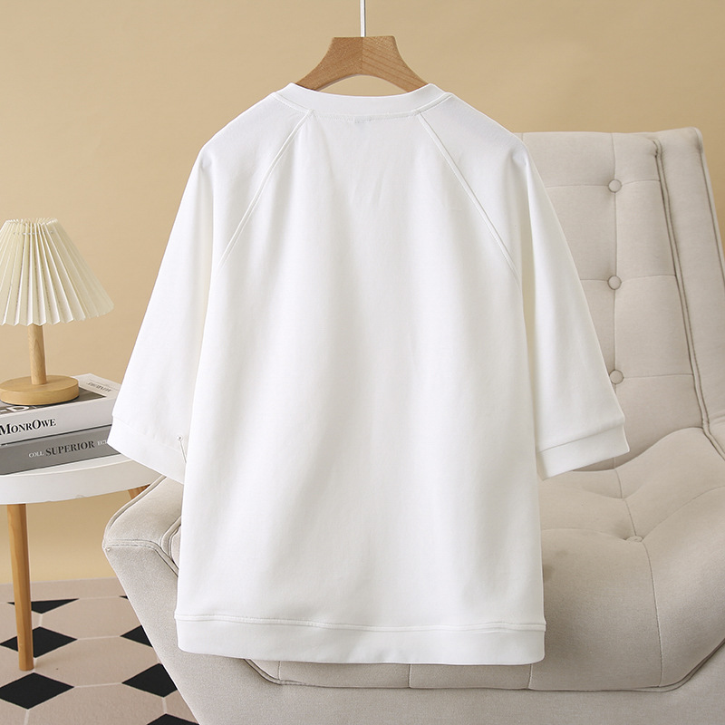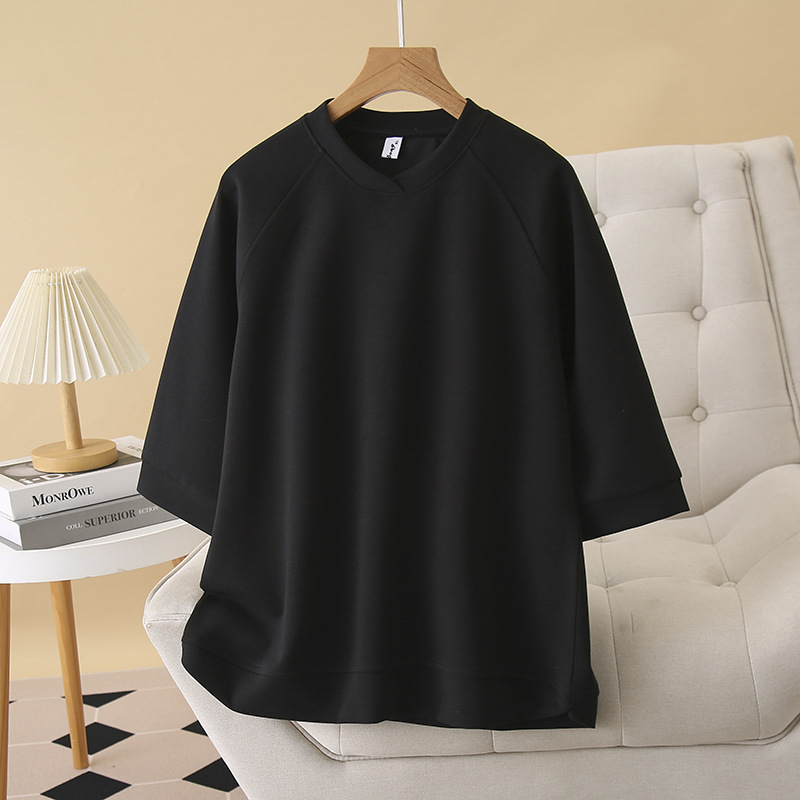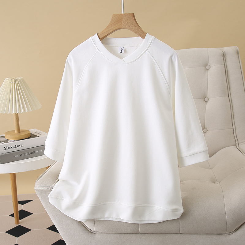 2025春夏七分袖tシャツ大サイズ女装200斤v襟カジュアル上着マンバ綿太った妹のガーディアン3058