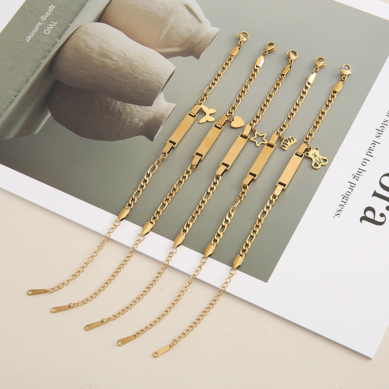 欧美跨境爆款时尚不锈钢儿童直排手链光面可激光刻字DIY儿童手饰