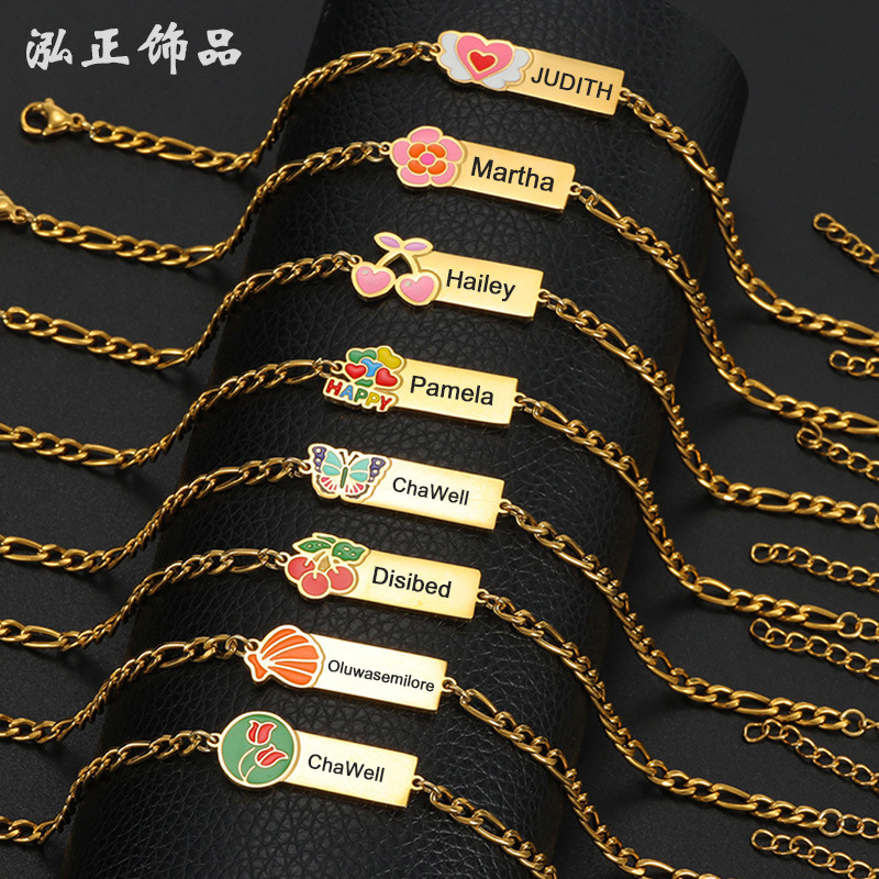 配饰新品儿童弯牌手链彩色爱心蝴蝶花朵长条刻字手链小孩生日礼物