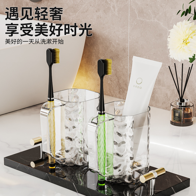 氷河紋嗽カップ軽贅沢透明歯ブラシカップ高颜値カップル洗面カップ家庭用歯ブラシカップ学生ブラシカップ